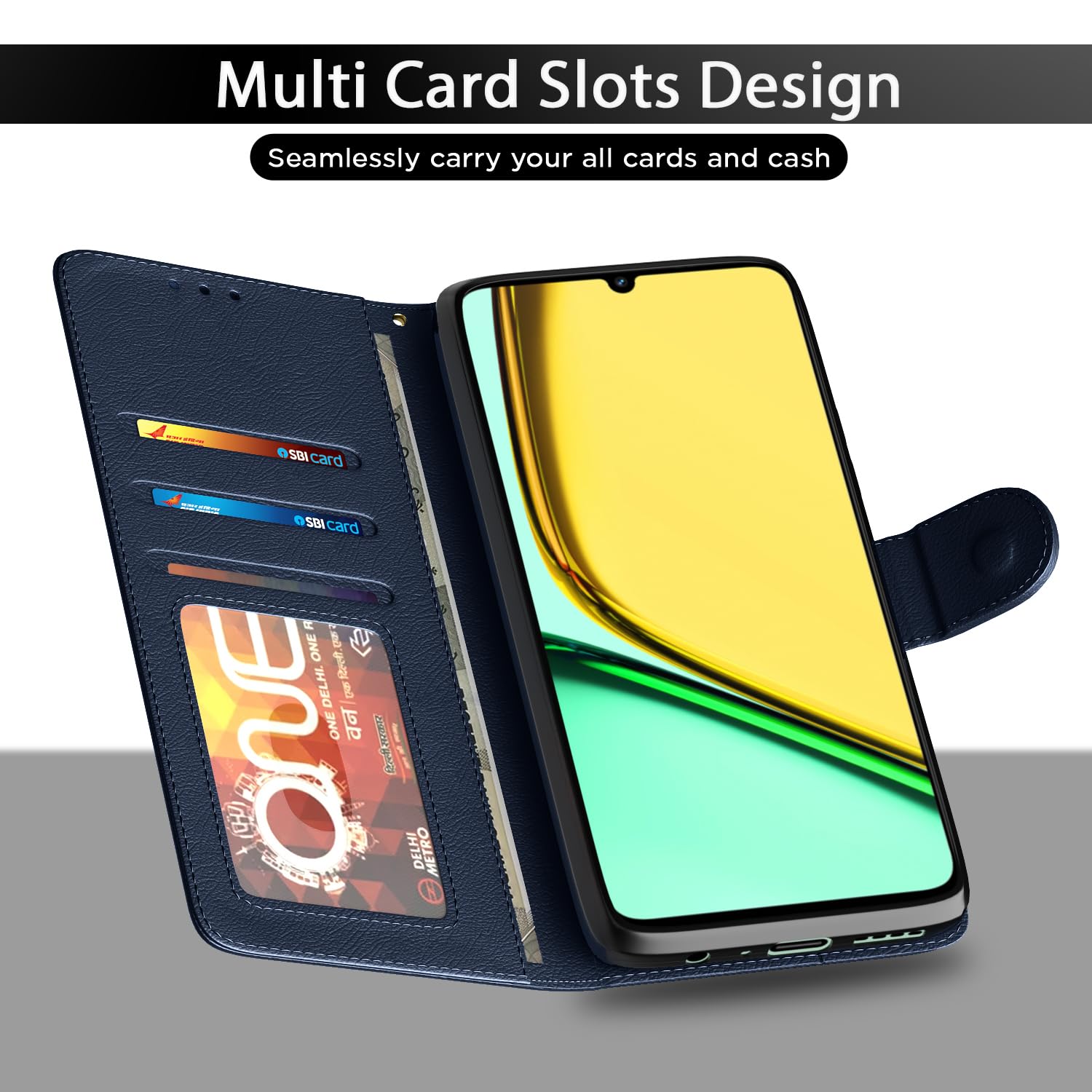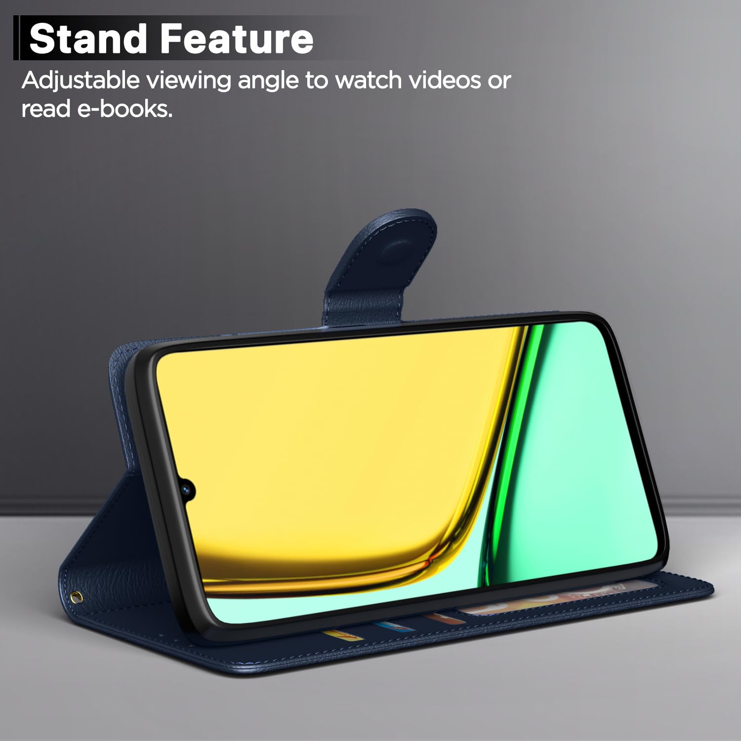 Kick back and relax with a kick-stand engineered into the design of Pikkme leather case. Become a walking mobile theater for quick media sessions on the go Enjoy entertainment while you eat and off your Realme C61 screen