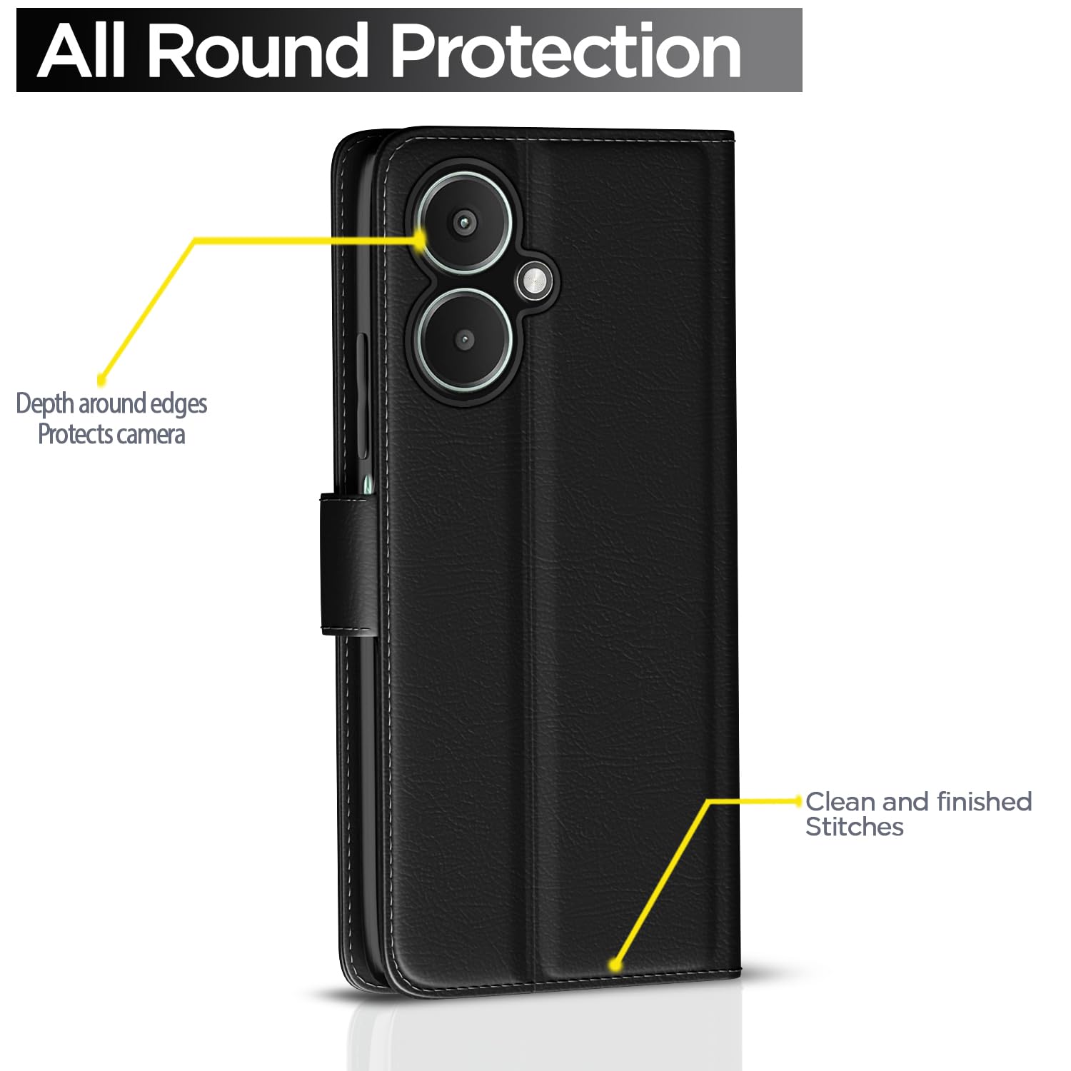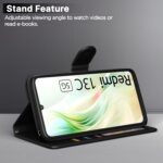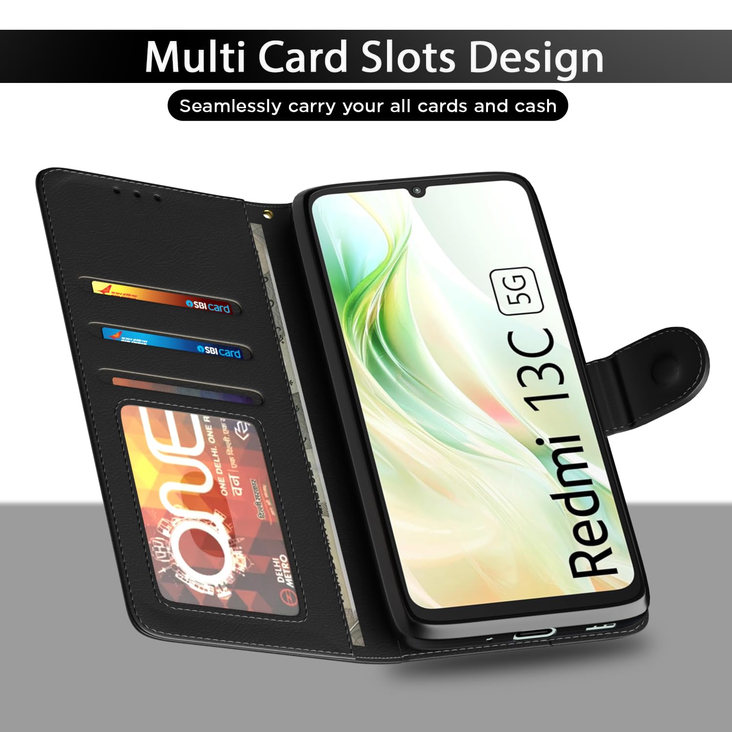 Pikkme Flip Cover Leather Finish | Inside TPU with Card Pockets | Wallet Stand and Shock Proof | Complete Protection Flip Case for Redmi 13C 5G(Black)