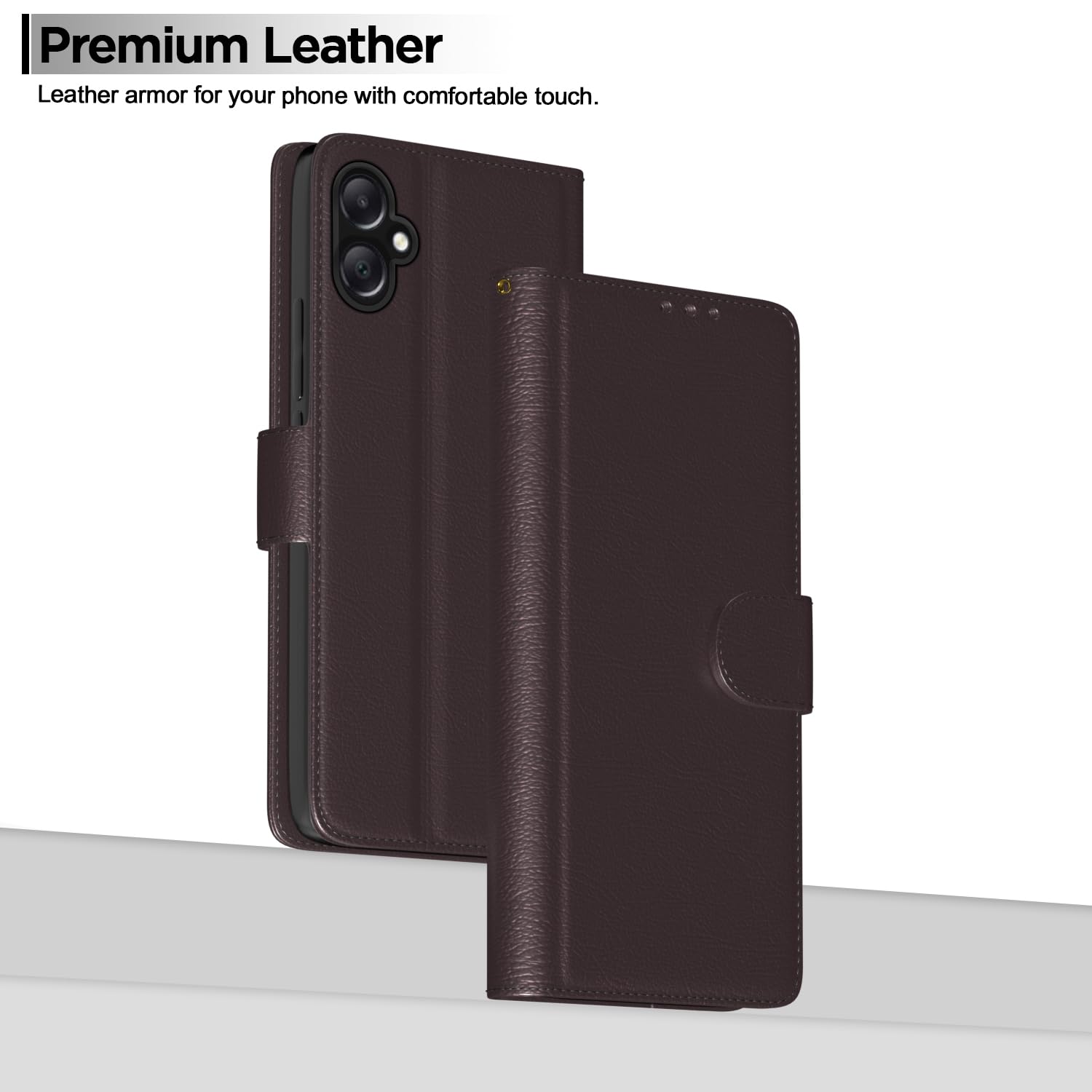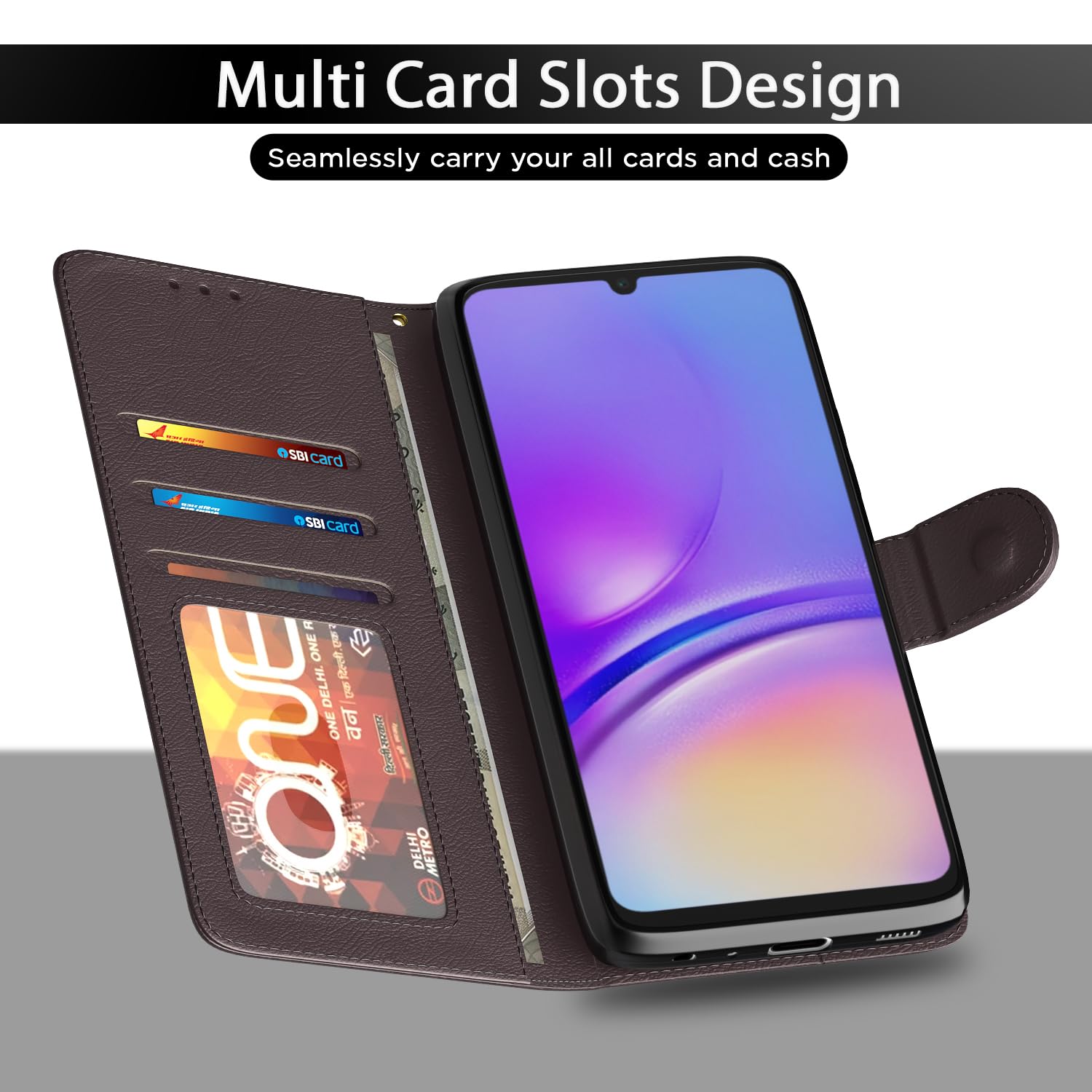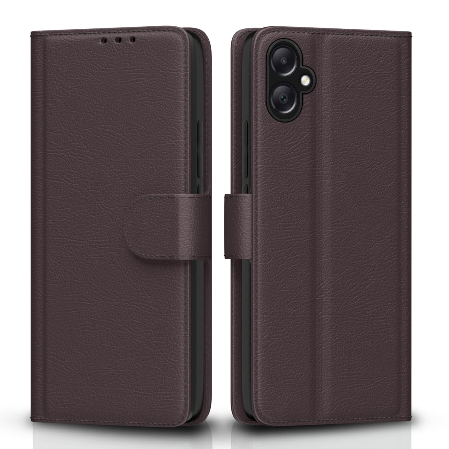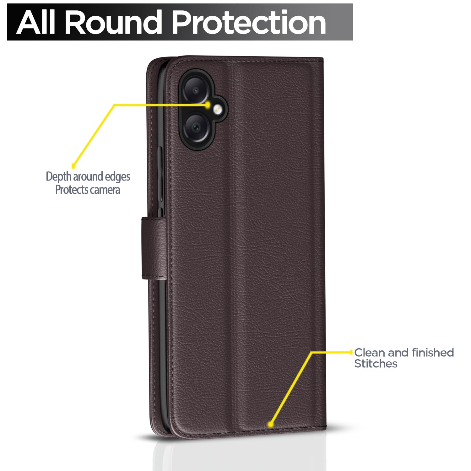 Pikkme Flip Cover Leather Finish | Inside TPU with Card Pockets | Wallet Stand and Shock Proof | Complete Protection Flip Case for Samsung Galaxy A05 / M05 / F05 (Coffee)