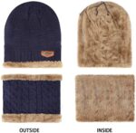 PinKit Men & Women Winter Beanie Hat Scarf Set Warm Knit Hat Thick Fleece Lined Winter Cap Neck Warmer-Color- Blue (Pack of 1 Pair)