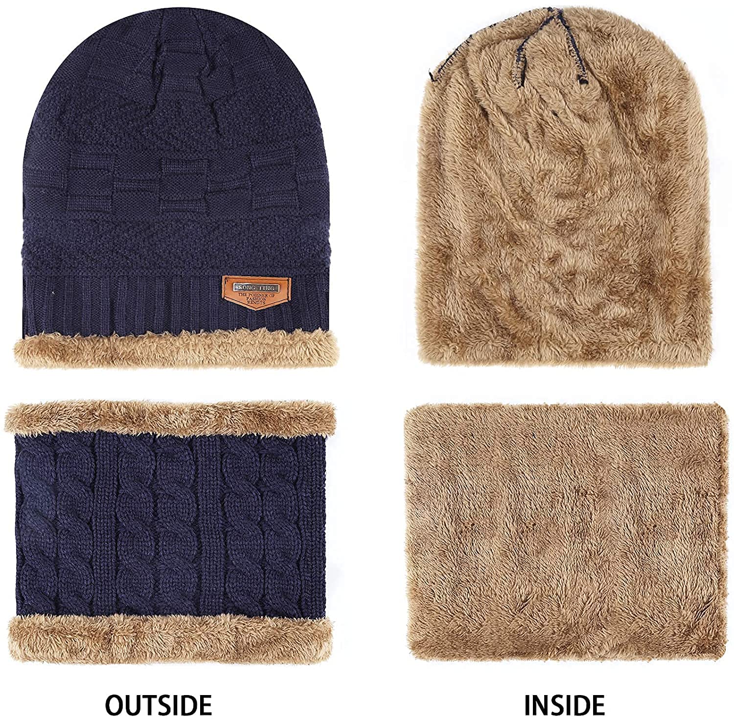 PinKit Dual layers design. Super thick and chunky acrylic knit construction keeps you warm. The soft fleece inner lining has better heat retention, enjoy the maximum warmth. Delicate sewing thread, provide the added durability. This winter hat and scarf set are perfect for daily wearing including indoors and outdoors activities, for example: sleeping, walking your dog, cycling, skiing, snowboarding, running, camping, traveling, fishing, hiking, motorcycling and so on. Folding light weight snow ski caps could cover your ears to provide extra warm on your ears and your cheek. Simple but fashionable design keeps you looking good in cold weather.