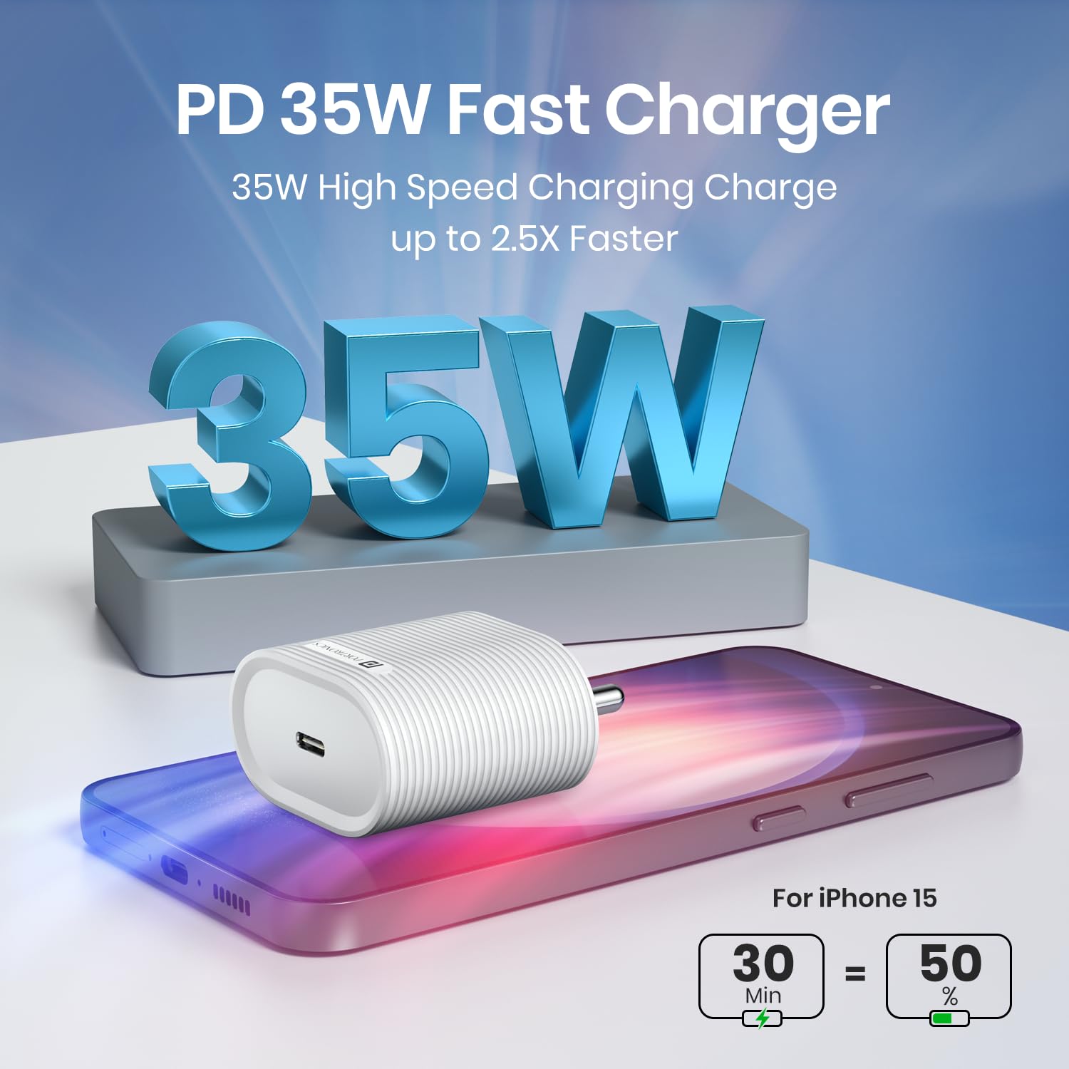 35W Fast Charging: Equipped with Power Delivery (PD) technology for rapid charging, capable of charging an iPhone 50% in just 30 minutes.