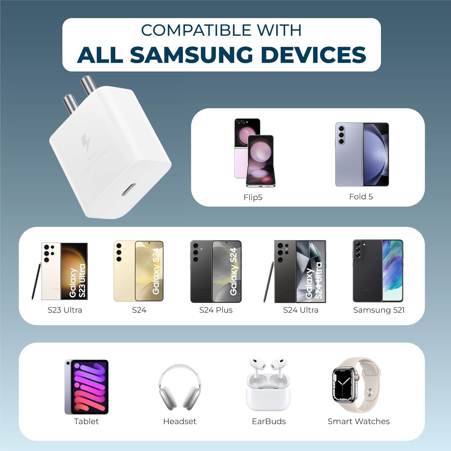 Ultimate Power duo: Compatible with Samsung Galaxy A | M | Z | F | S Series 25w charger are the ultimate power duo. Together, they’ll keep your device charged up and ready to take on anything the world throws your way