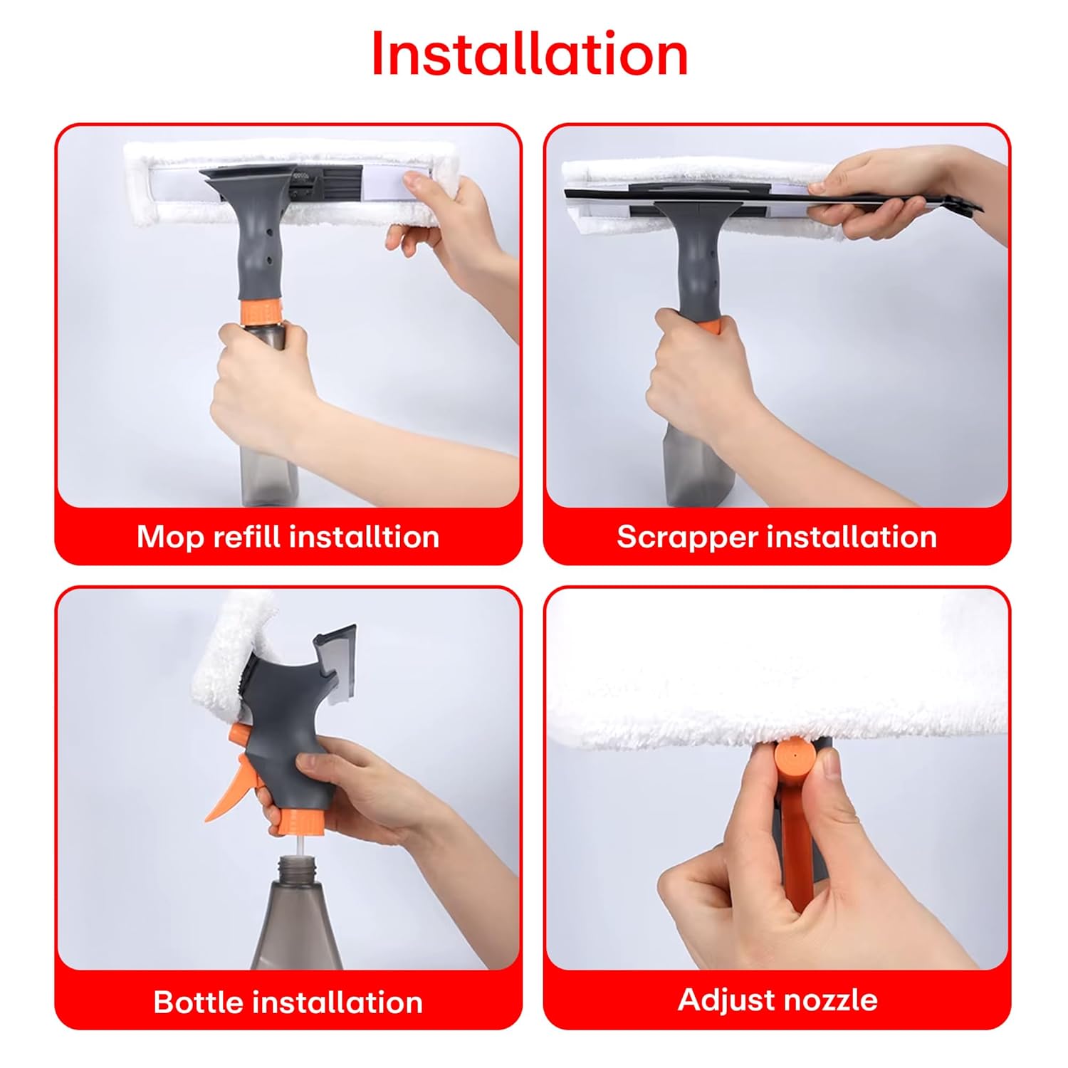 PRIME PICK Prime Pick Spray Window Cleaner – Self-Wringing, Stainless Steel Handle with Mop Pad for Dust & Wet Cleaning