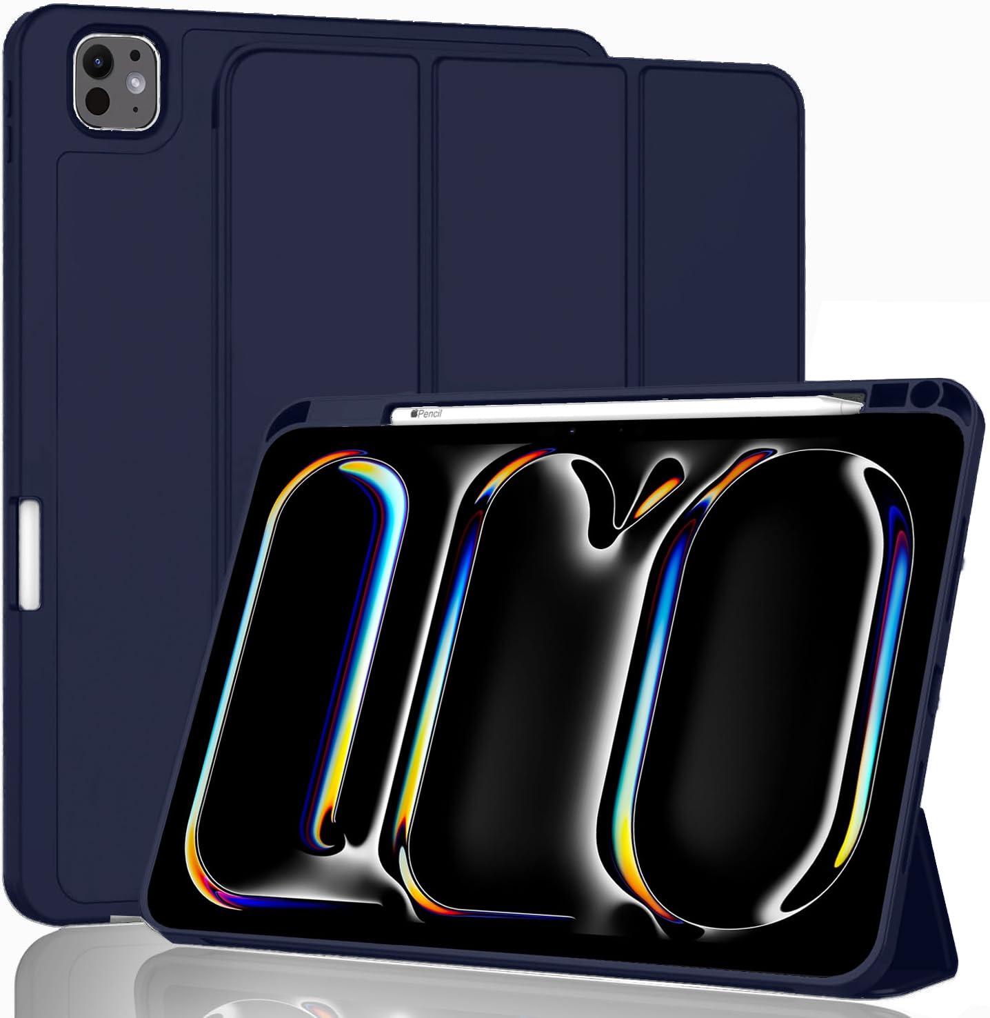 ProElite Case Cover for Apple iPad Pro 13 inch 2024 Cover, Pencil Case for iPad Pro 13 M4 2024 with Pencil Holder [Soft Flexible Case] Recoil Series – Dark Blue