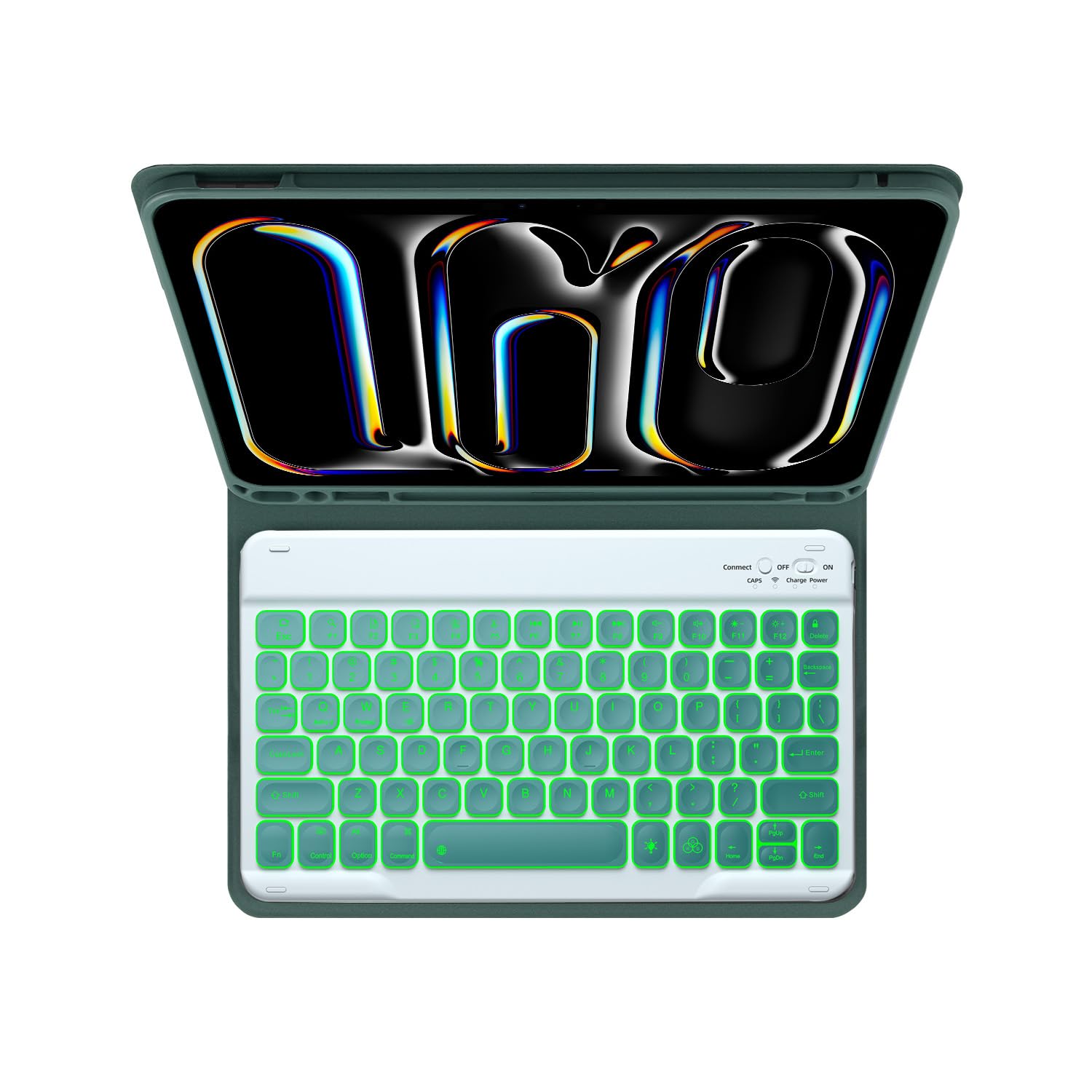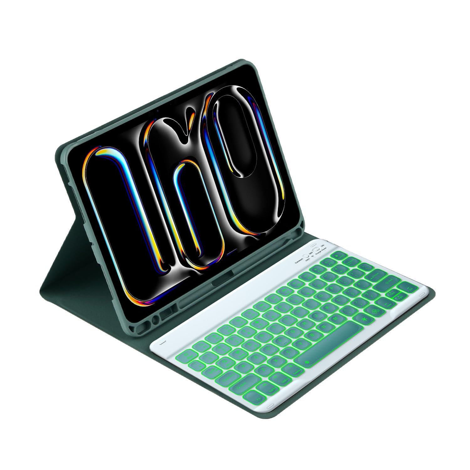 ProElite Keyboard case for Apple iPad Pro 11 inch 2024 M4 with Pencil Holder, Magnetic Detachable Wireless Bluetooth Keyboard Built-in 7-Colors Backlit, Dark Green
