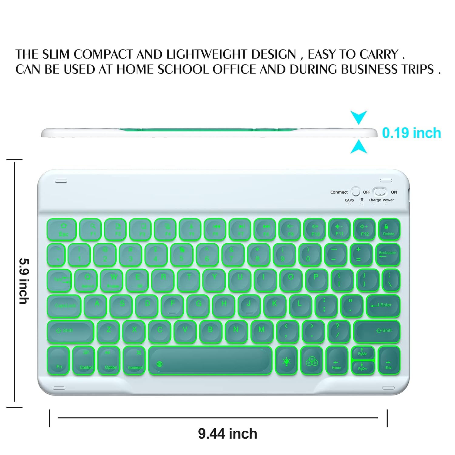 ✔【Detachable Wireless Keyboard with Rainbow Backlit】7 colors rainbow back-light make typing fun and easy in the dark/night, you can change the colors on keyboard’s left, middle and right seperatly. The Bluetooth connection is stable and mechanical scissor keys are quiet with rebound feature. With the U.S Chipset, helping you to type stable and fast. Rechargeable battery make keyboard can work wireless for longer time, provide the freedom to read or work anywhere at any time