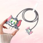 Prolet Cartoon Silicone Charger Case for iPhone Adapter Compatible with 18W and 20W Charger Only 360° Full Protection Silicone Case Cover 4 in 1(Tom) Grey