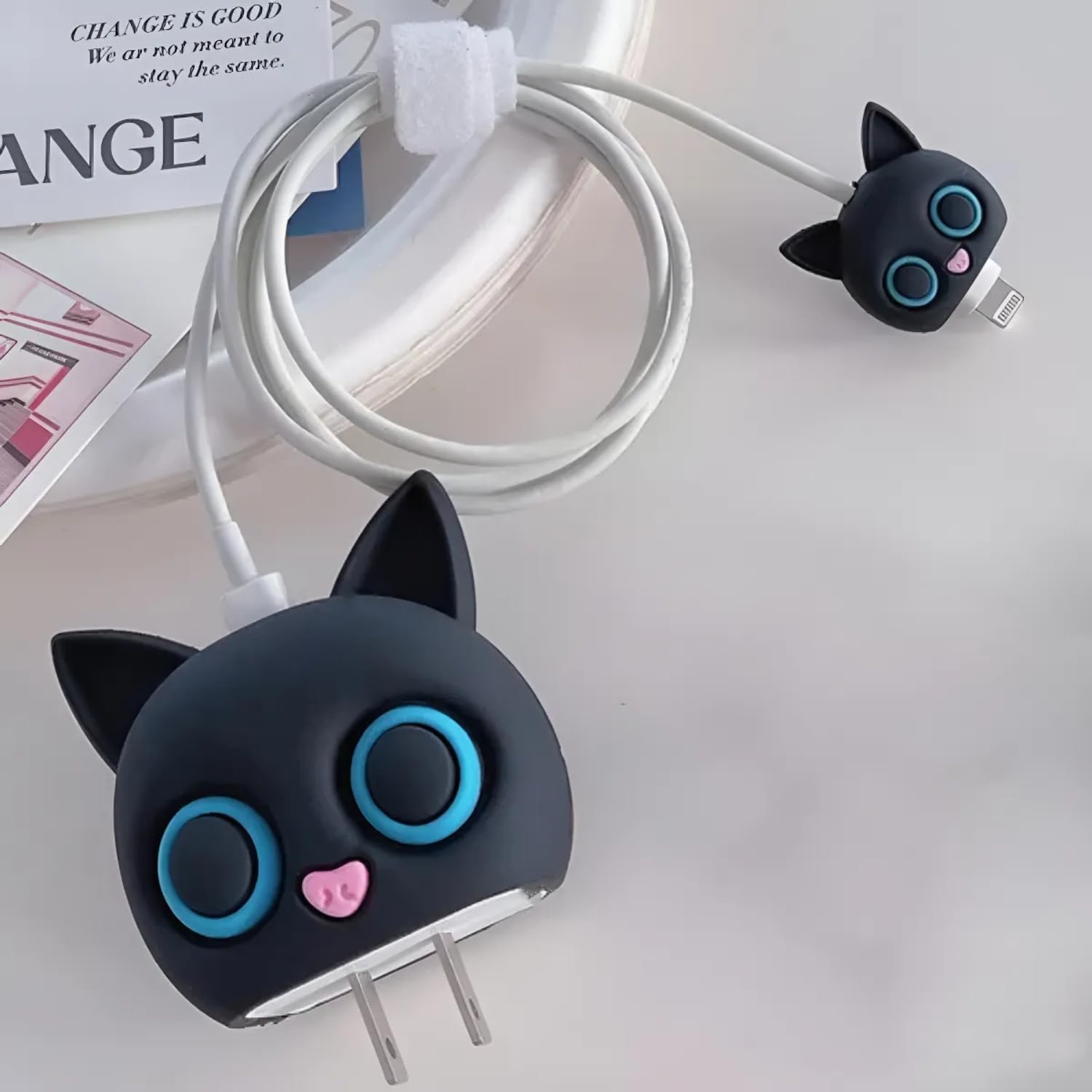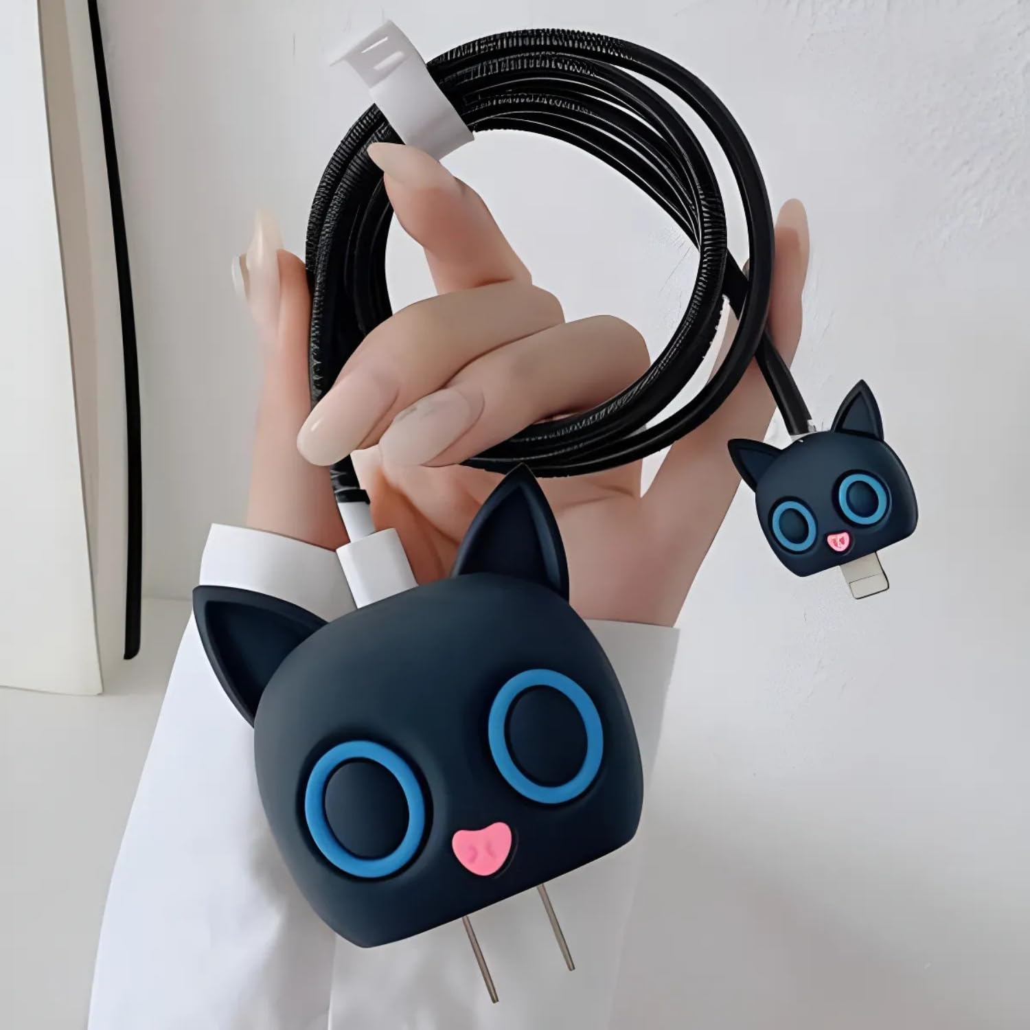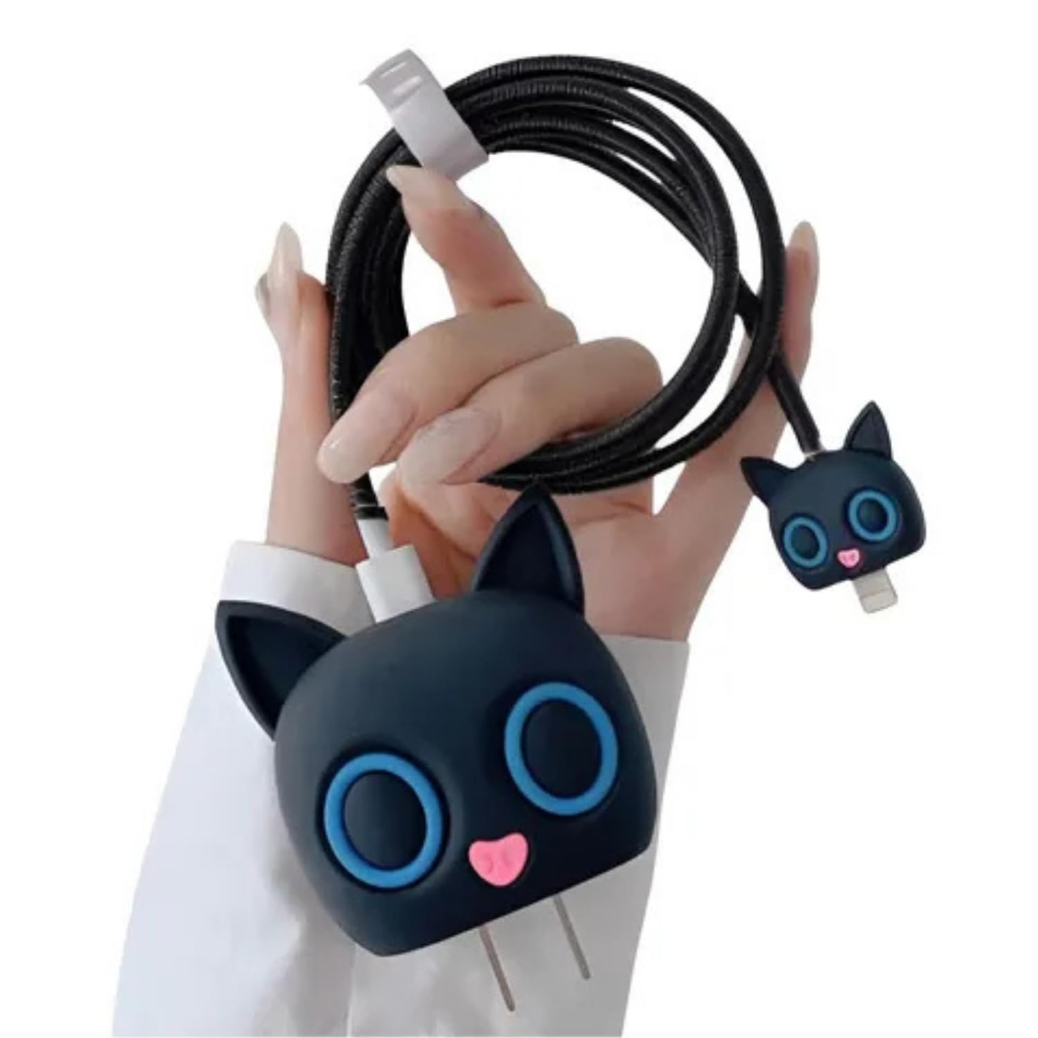 Protect your Apple adapter in style with this Protective Case Cover 4in1 Compatible with Apple 20W/18W iPhone USB-C Power Adapter. Specially crafted as an iPhone charger protector case, it provides complete protection for your power adapter and cable while keeping it stylish and trendy. This iPhone charger case cover set includes a charger cover, adapter protector, and wire saver, giving durability and preventing cable bending or fraying. Made with high-quality silicone, the apple charger cover ensures shock absorption, dustproof protection, and slip resistance. Featuring a cute 3D Cartoon Black Cat Two Eye character, this cover adds fun and personality to your everyday essentials. Compatible with Apple 20W adapter, iPhone charger case, and charger cover for C-Type, it ensures wide usability for multiple chargers. Whether at home, in the office, or traveling, this charger case cover is the perfect way to keep your adapter looking brand new while adding a touch of style.