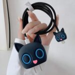✅ Unique 3D Cartoon Design: Fun Black Cat Two Eye character charger case cover gives your adapter a stylish look while protecting it – perfect gift for iPhone users.