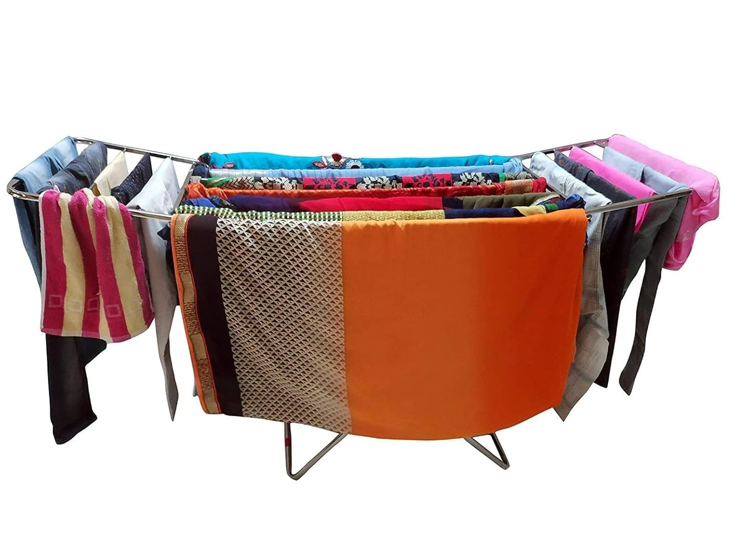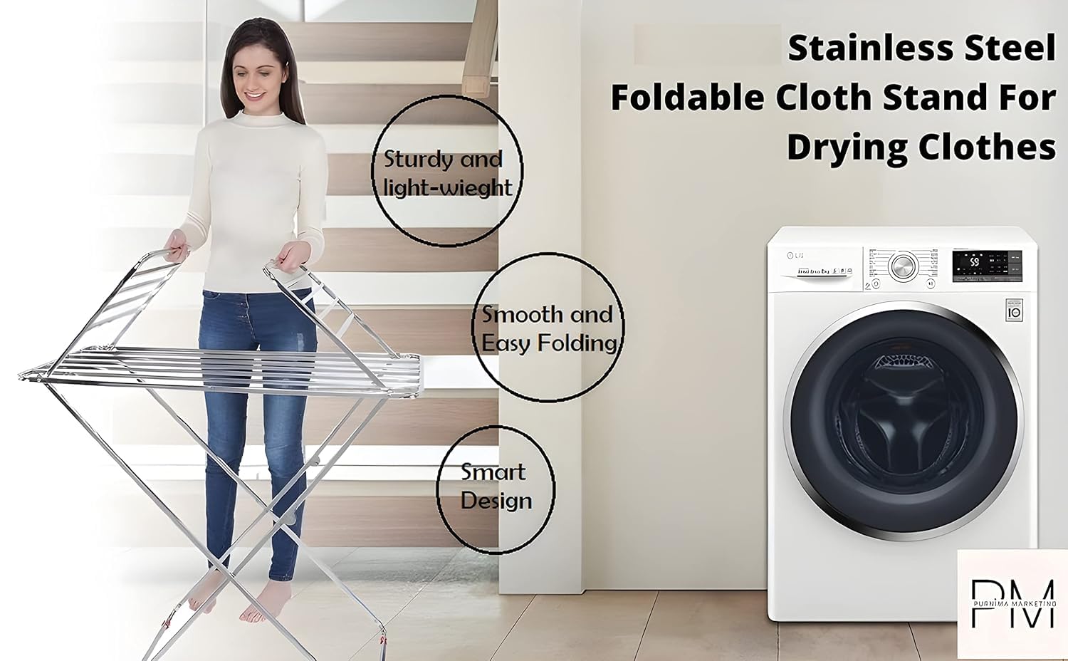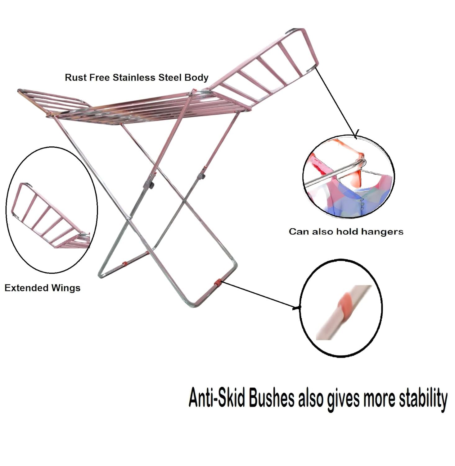 Purnima Marketing Stainless Steel Foldable Clothes Stand for Drying Double Rack Cloth Stands for Drying/Cloth Drying standSteel (Cross) (Square Pipes)