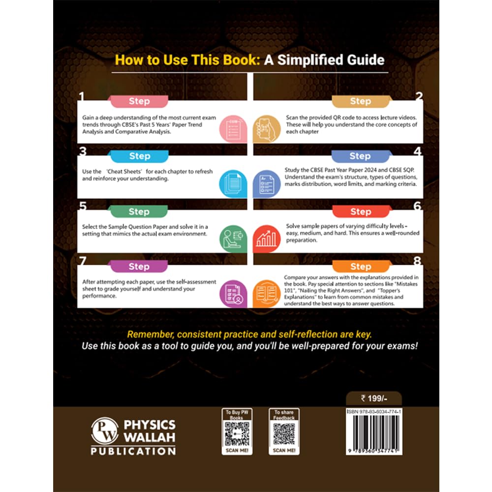 How will this book help you?Latest Syllabus 2024-25: Stay on top of the latest syllabus with comprehensive content that covers everything you need.How to Rock Your Board Exams: Unlock secrets to exam success with pro tips tailored for every study style!Comparative Analysis: Understand the paper setters’ approach with a breakdown of 2023 and 2024 SQPs.Cheat Sheets: Quick recaps make last-minute revisions simple and effective!CBSE PYP 2024 & 2023 Insights: Practice with previous year’s papers and get examiner insights.CBSE SQP with Marking Scheme: Discover scoring strategies with sample papers and marking schemes.CBSE Additional Practice Questions: Get extra practice to ensure no surprises on exam day!5 CBT Sample Papers with Explanations: Master CBTs with detailed explanations for every sample paper.4 Papers with QR Handwritten Explanations: Access handwritten solutions through QR codes for a personalized learning experience.Level-wise Papers (Easy to Hard): Start easy, challenge yourself, and build up to mastering harder papers!Step-wise Marking Scheme: Learn how each step earns points and maximize your score potential.Self-Assessment Tools: Track your progress and target areas needing more focus.