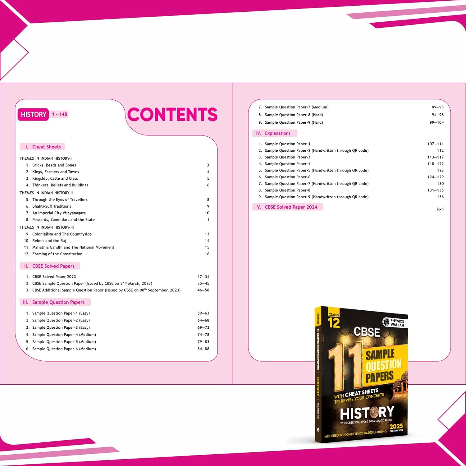 Generic Name : PW CBSE 11 Sample Question Papers Class 12 History for 2025 Exam | Competency-Based Learning | PYQ 2024 with Topper’s Explanations, CBSE SQP & CBSE Practice Questions