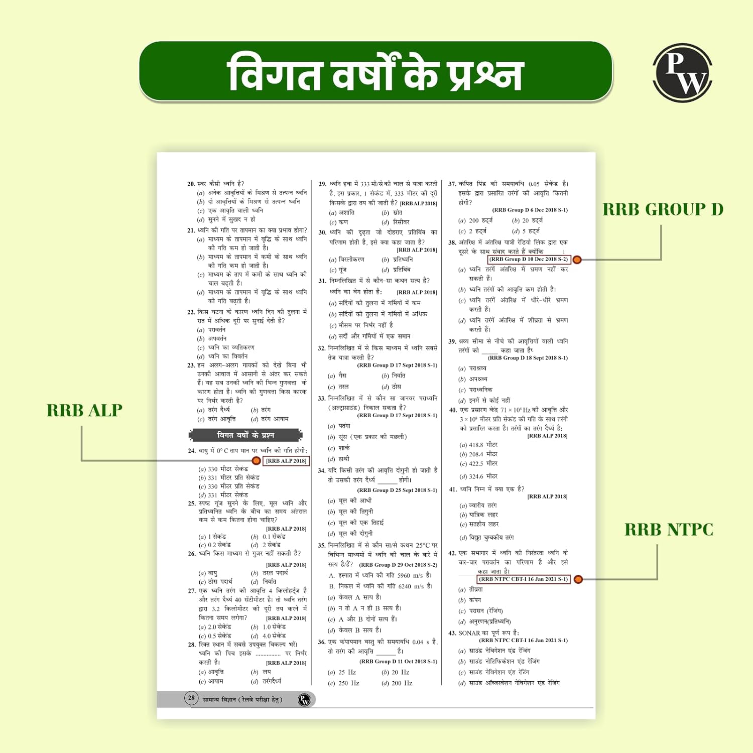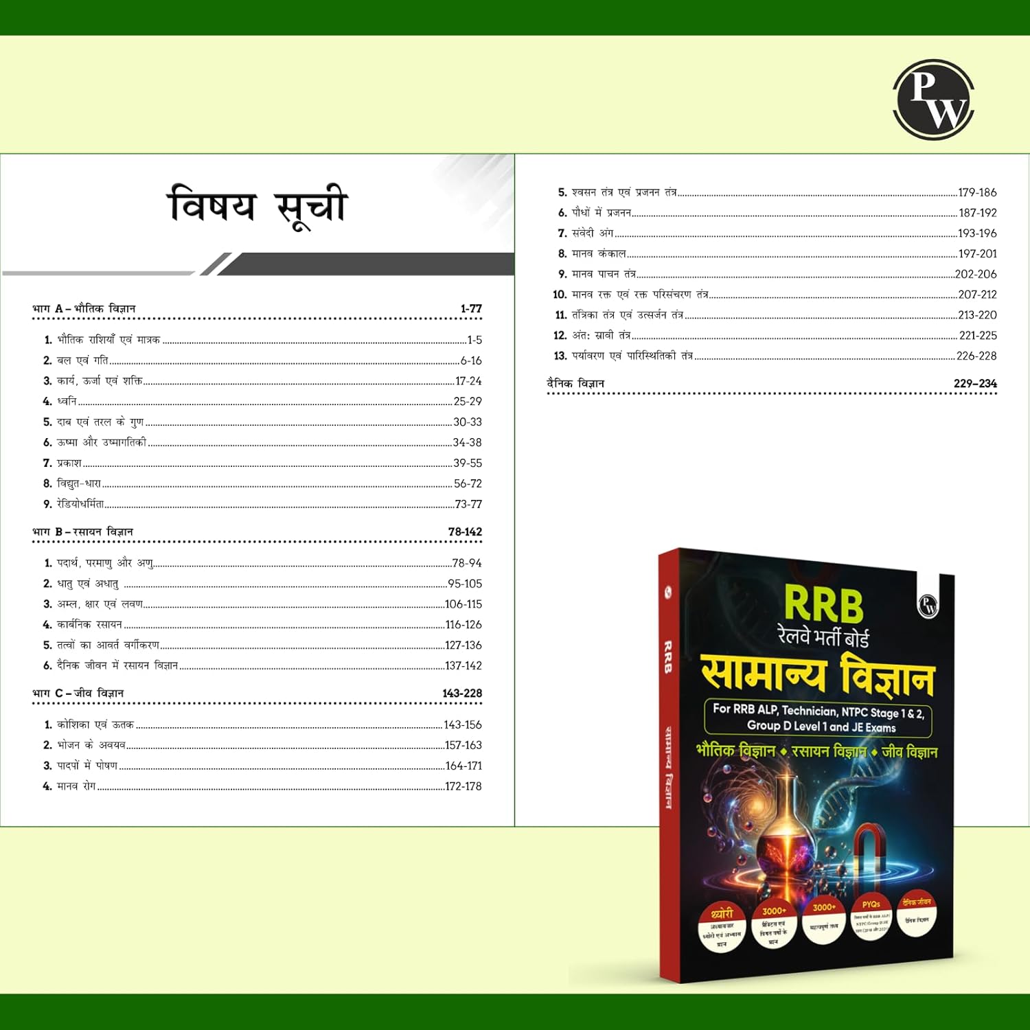 Generic Name : PW RRB General Science For RRB ALP, Technician, NTPC Stage 1 & 2, Group D Level 1 and JE Exams 2024 I Chapterwise Theory with Exercise I PYQs I Hindi Edition