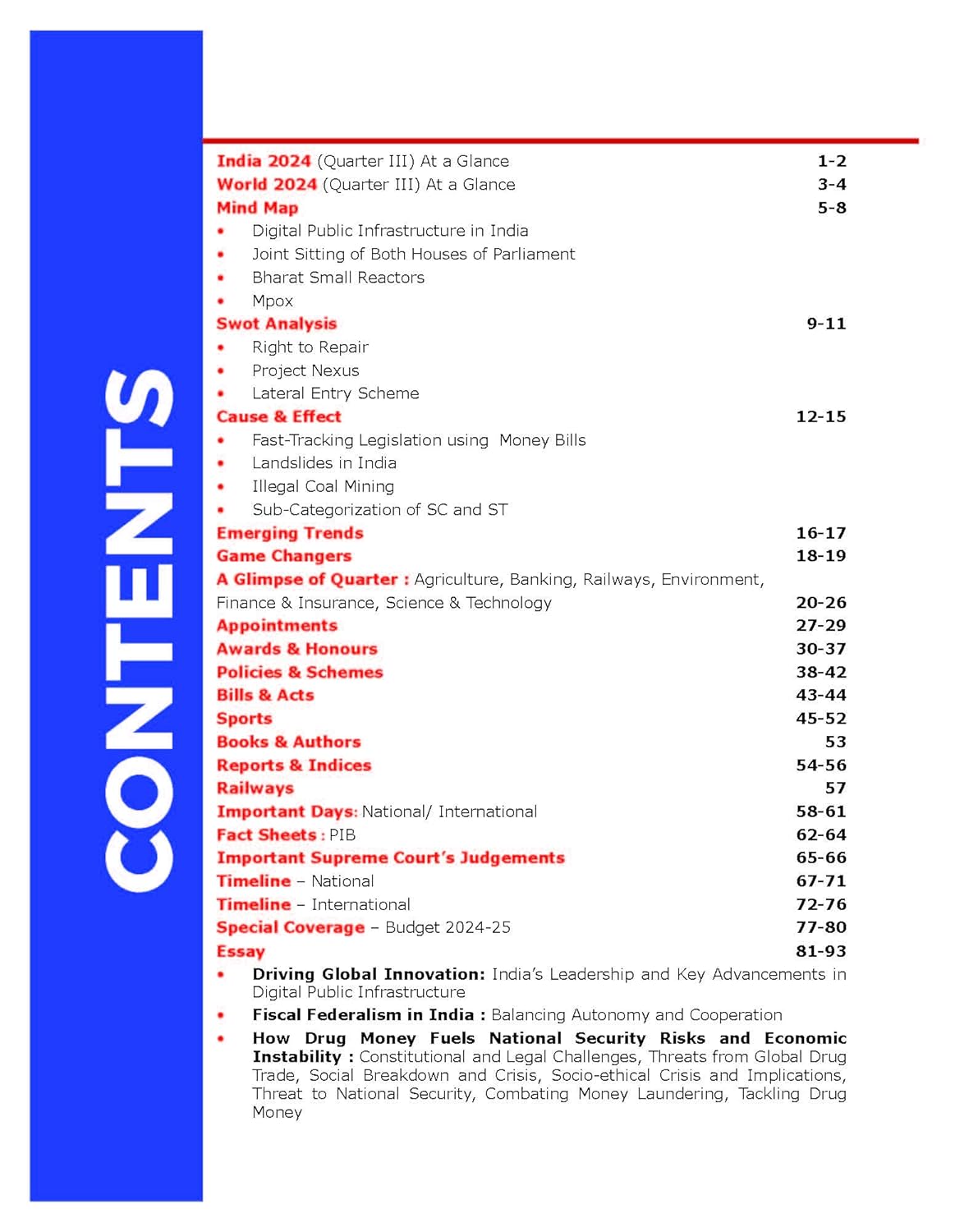The new 8th edition of the Book Quarterly Current Affairs 2024 Vol 3 – July to September for Competitive Exams is a unique handy magbook as it gives the complete update of the three months of the 3rd Quarter of 2024.