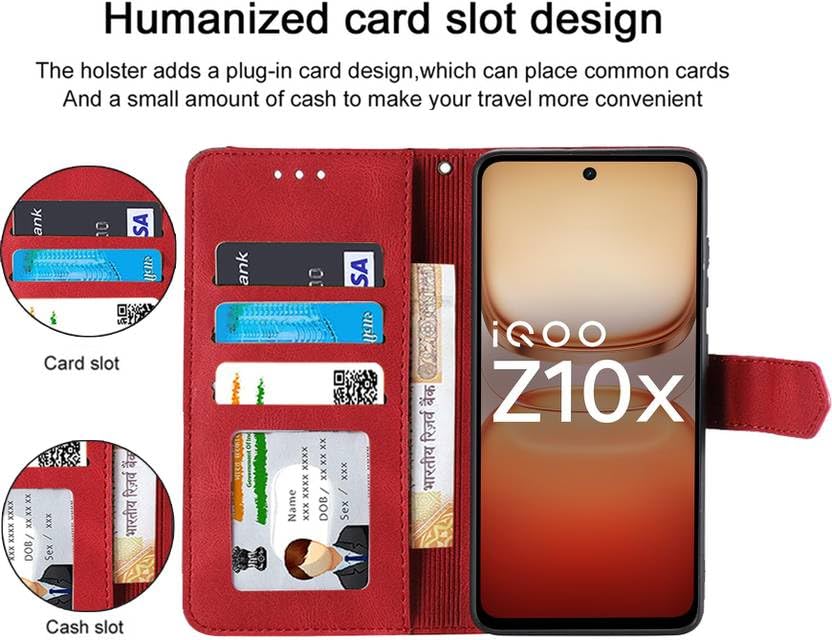 RAHISHI Flip Cover Compatible for iQOO Z10X 5G/Vivo T4X 5G Flip & Full Cover Attractiv Red