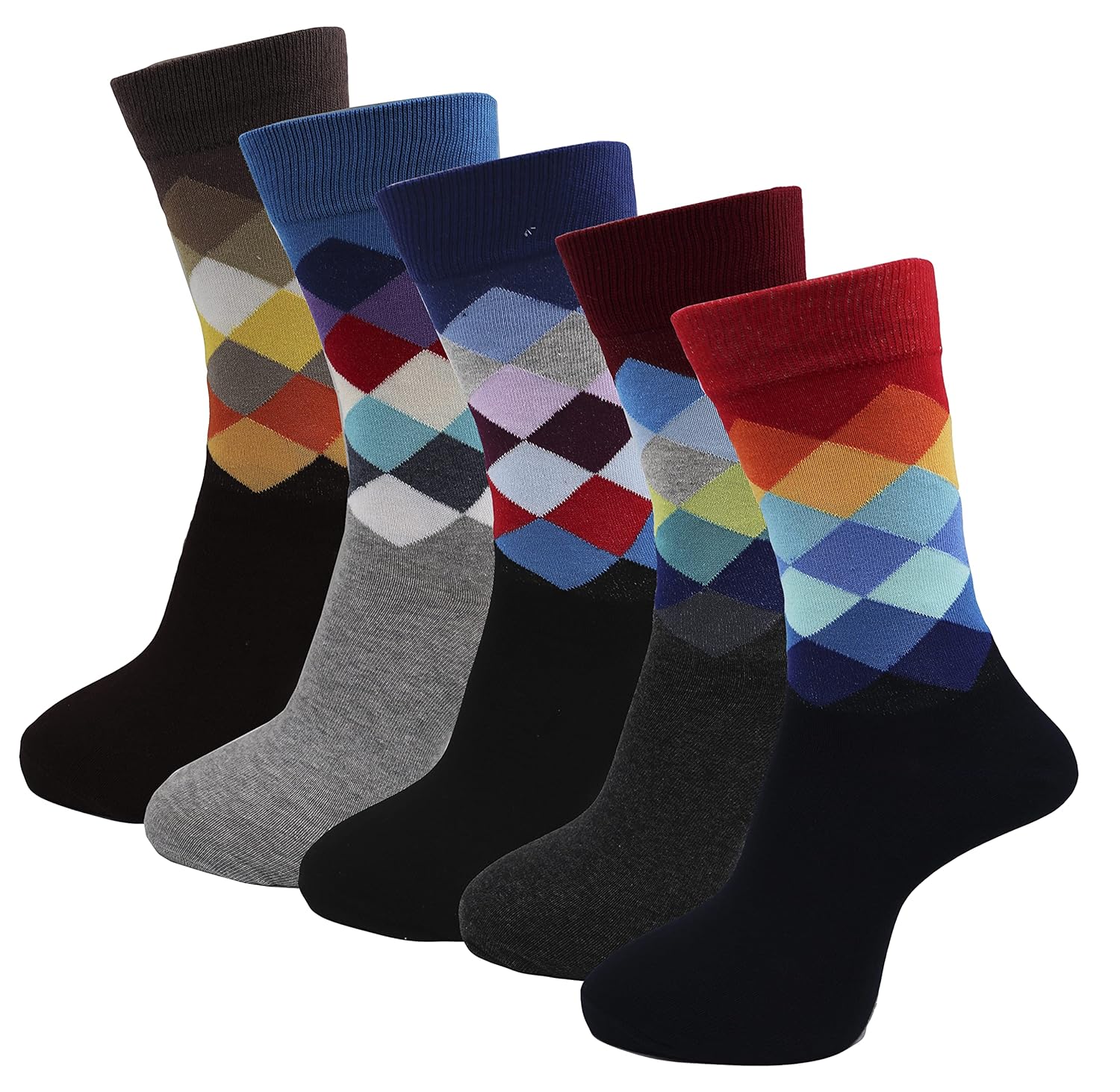 RC. ROYAL CLASS Men’s Calf Length Pure Cotton Multicolored Socks (Pack of 5 Pairs)