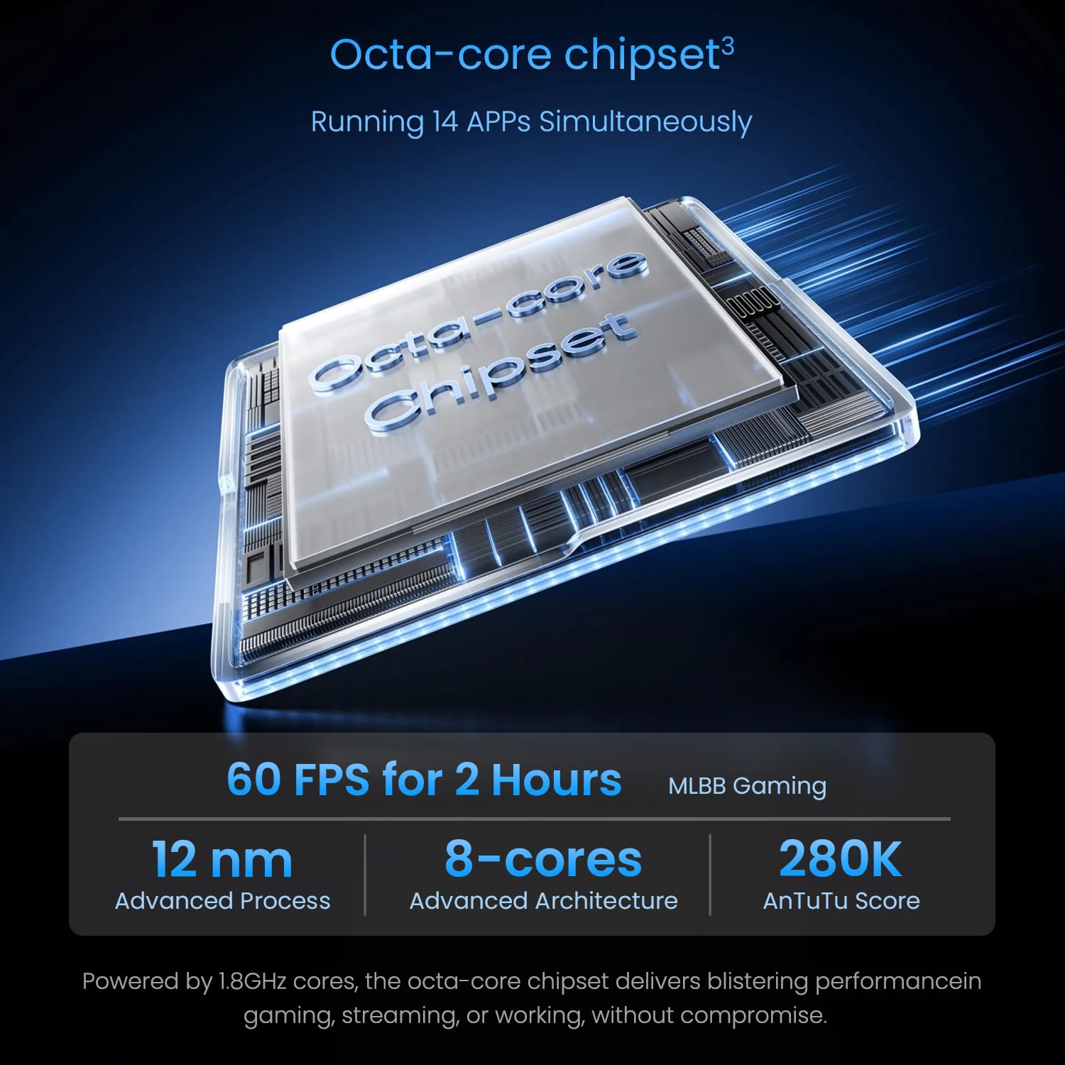 Smooth multitasking and lag-free performance for apps, browsing, and games, powered by the Unisoc T7250.