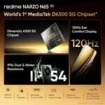 realme NARZO N65 5G (Amber Gold 4GB RAM, 128GB Storage) India’s 1st D6300 5G Chipset | Ultra Slim Design | 120Hz Eye Comfort Display | 50MP AI Camera| Charger in The Box