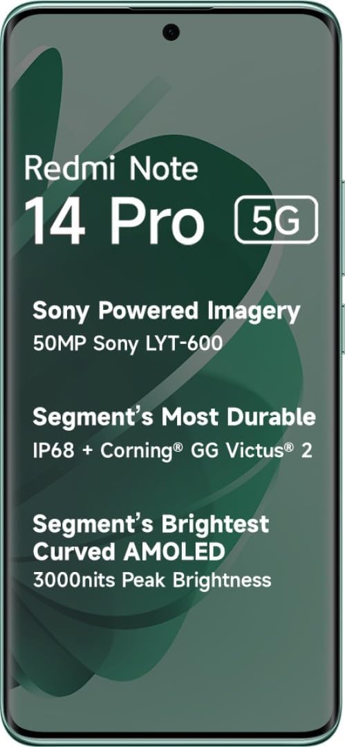 Redmi Note 14 Pro 5G Ivy Green 8GB RAM 128GB Storage |50 MP Sony Camera Setup|Corning Gorilla Glass Victus 2 | 1.5K 3D Curved AMOLED | Mediatek Dimensity 7300- Ultra