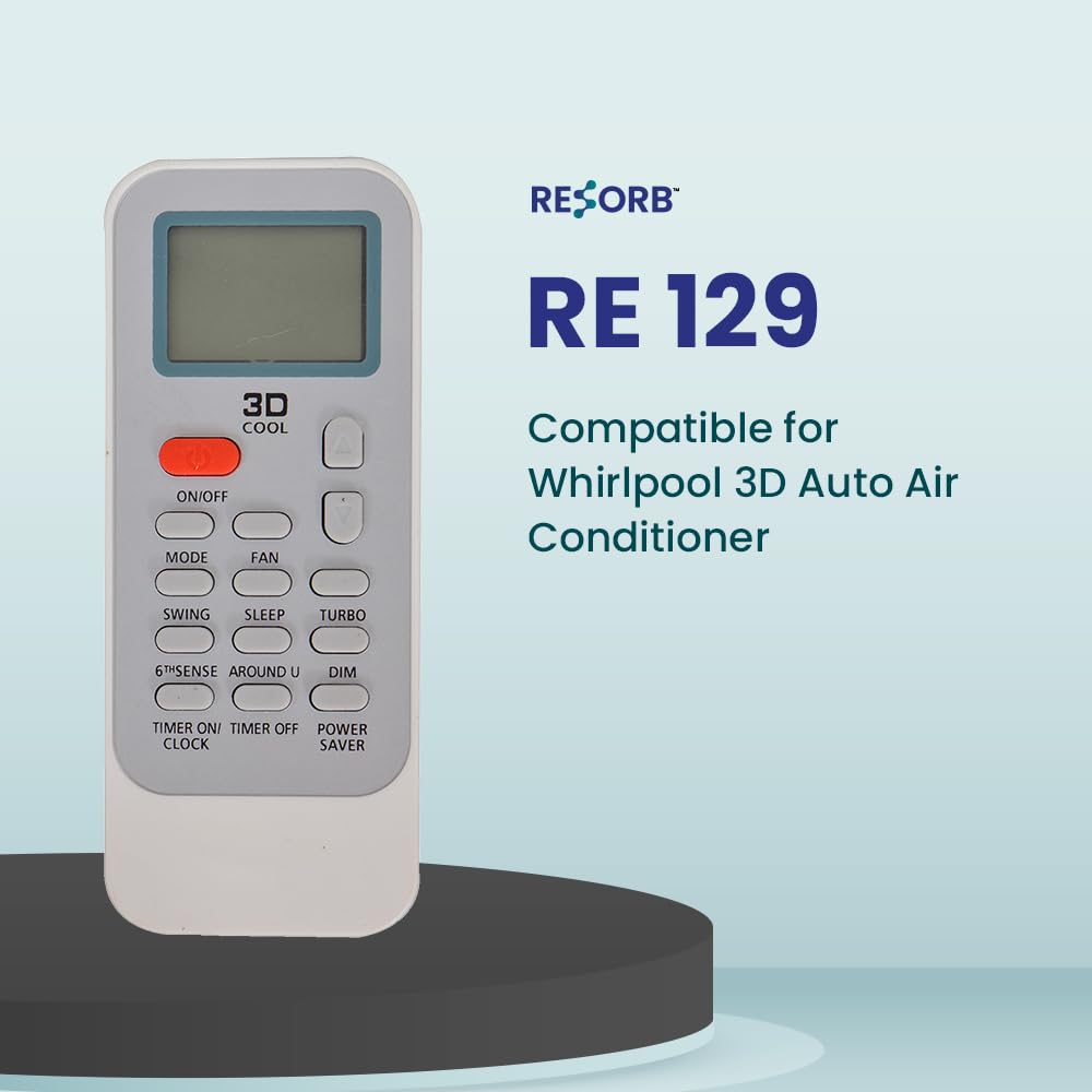 RESORB RE 129 (3D AUTO) AC Remote Control Compatible for Whirlpool As | Air Conditioner Remote Controller for 1.5, 2 ton AC (Old Remote Exactly Same Remote Will Only Work)