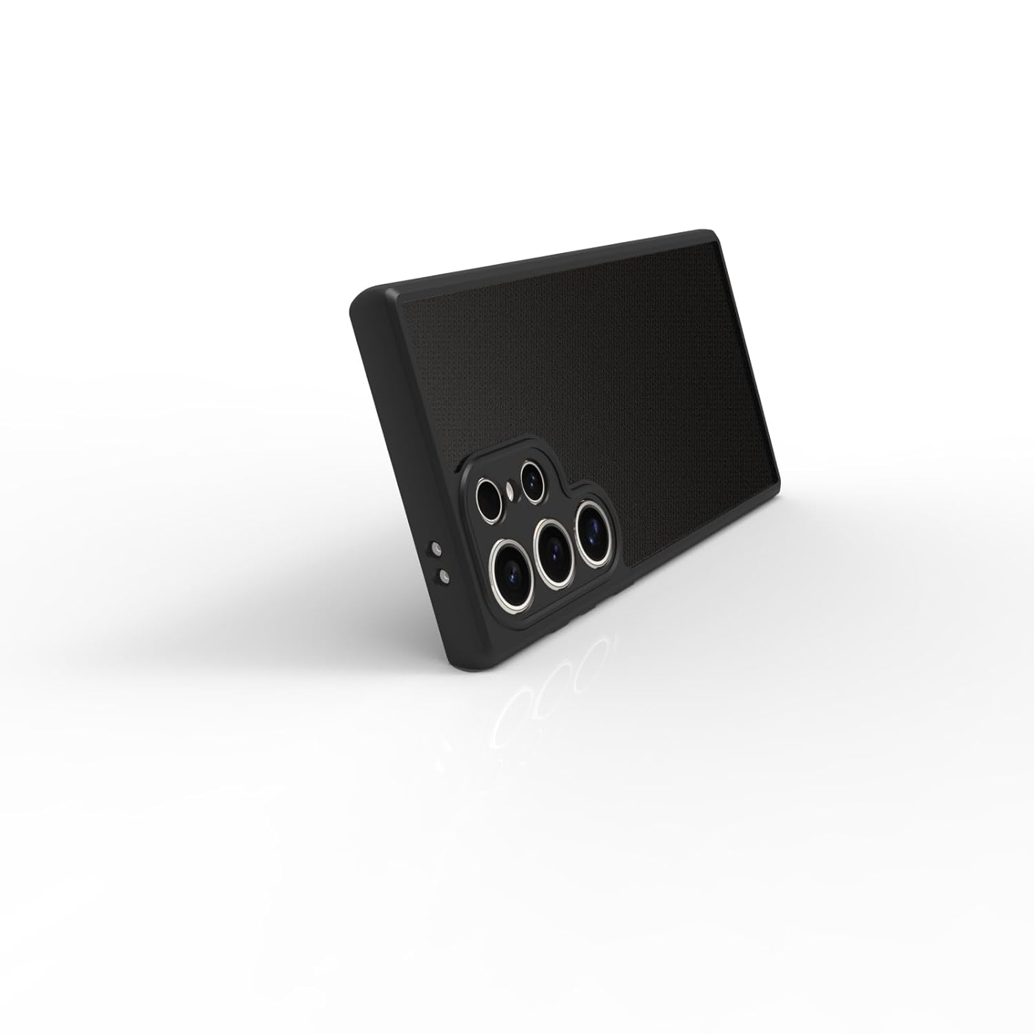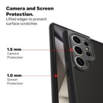 It boasts a robust construction that’s designed to absorb and dissipate the force of impacts. Its dual-layer design combines a tough smoke black translucent polycarbonate (PC) back panel with a resilient black thermoplastic polyurethane (TPU) bumper, forming a formidable shield against accidental drops and bumps.