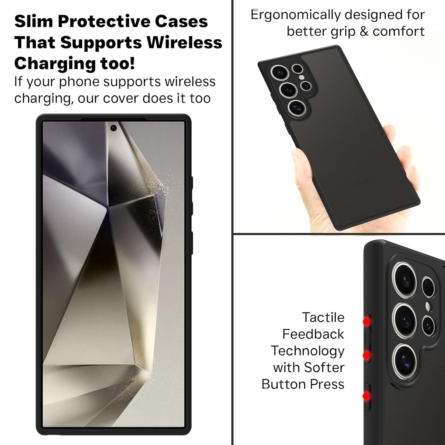 The combination of PC and TPU offers comprehensive protection, safeguarding your phone’s corners, edges, back, and screen. Keep your device pristine and free from scratches, nicks, and other forms of damage.