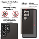 RIGGEAR Shockproof Sleek Hybrid Armor Back Cover Case Compatible with Samsung Galaxy S24 Ultra (Smoke Black Matte PC + Black TPU Bumper)