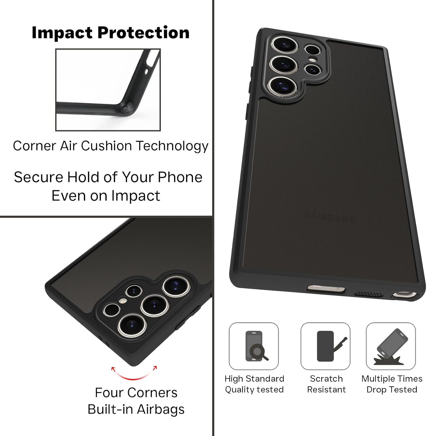 Case Material Type : Hybrid(Soft Black TPU Bumper + Hard Polycarbonate Matte Plate)