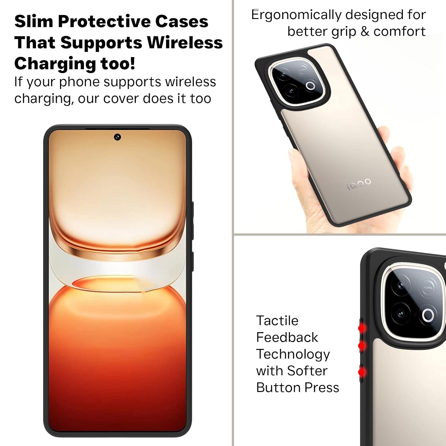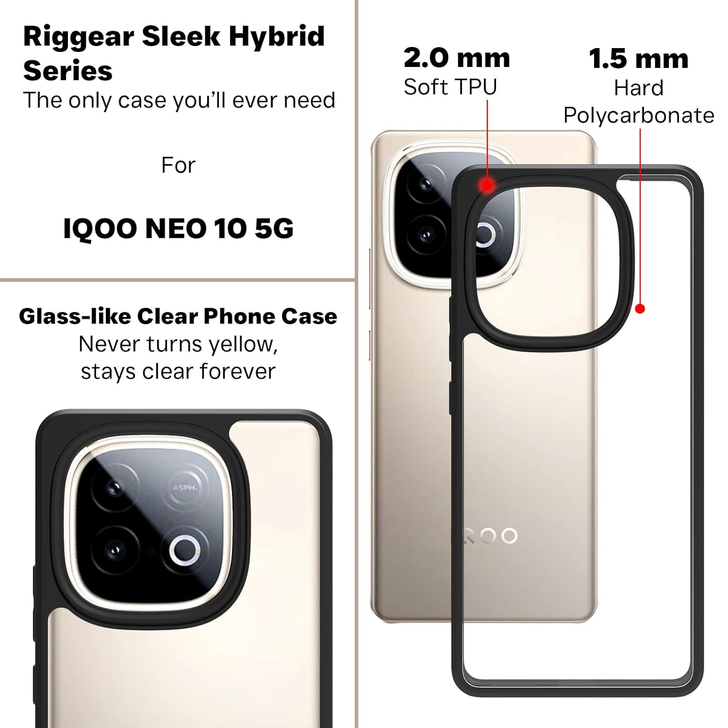 RIGGEAR Shockproof Sleek Hybrid Armor Back Cover Case for iQOO Neo 10 5G (Clear PC and Black TPU Bumper)