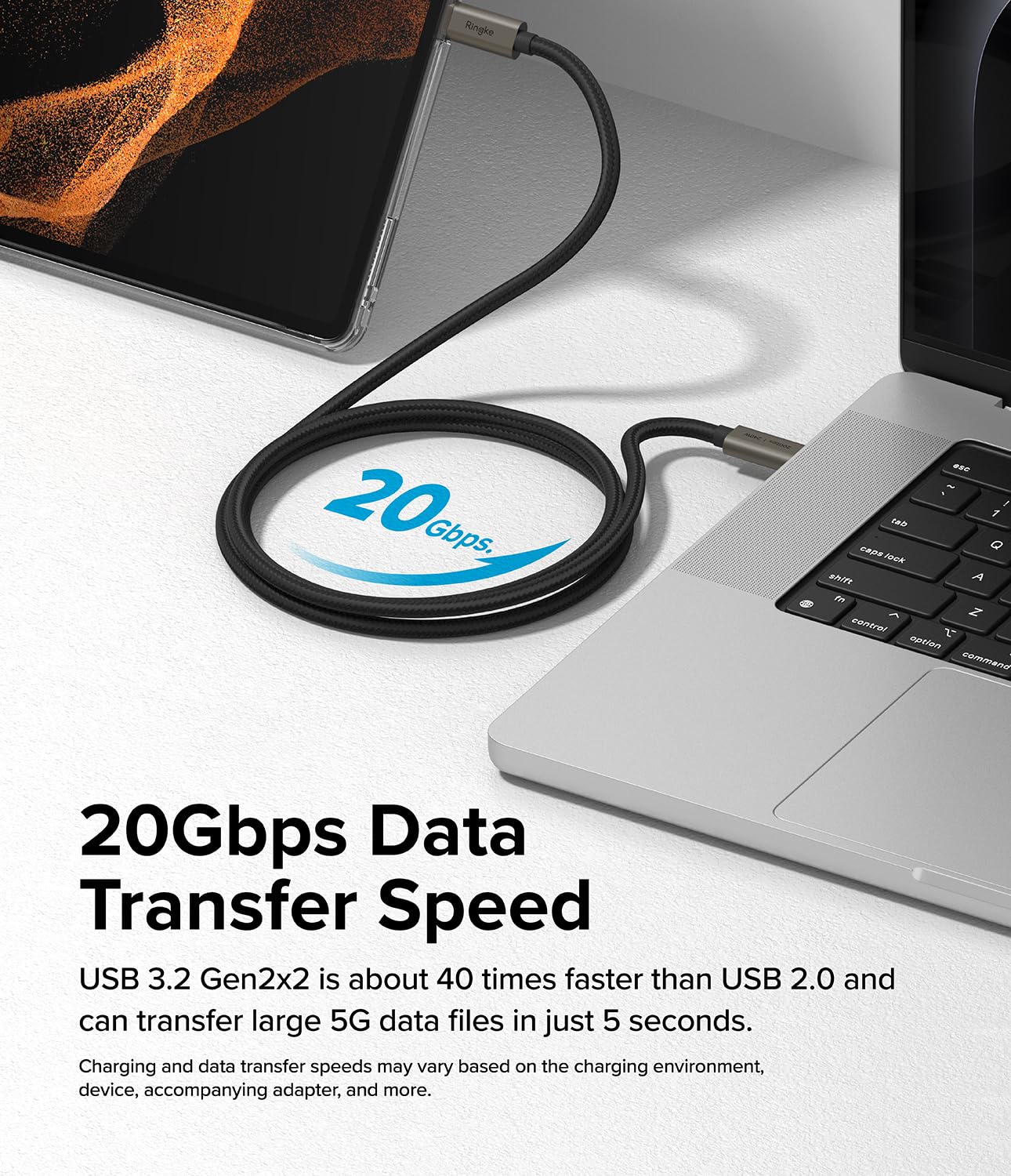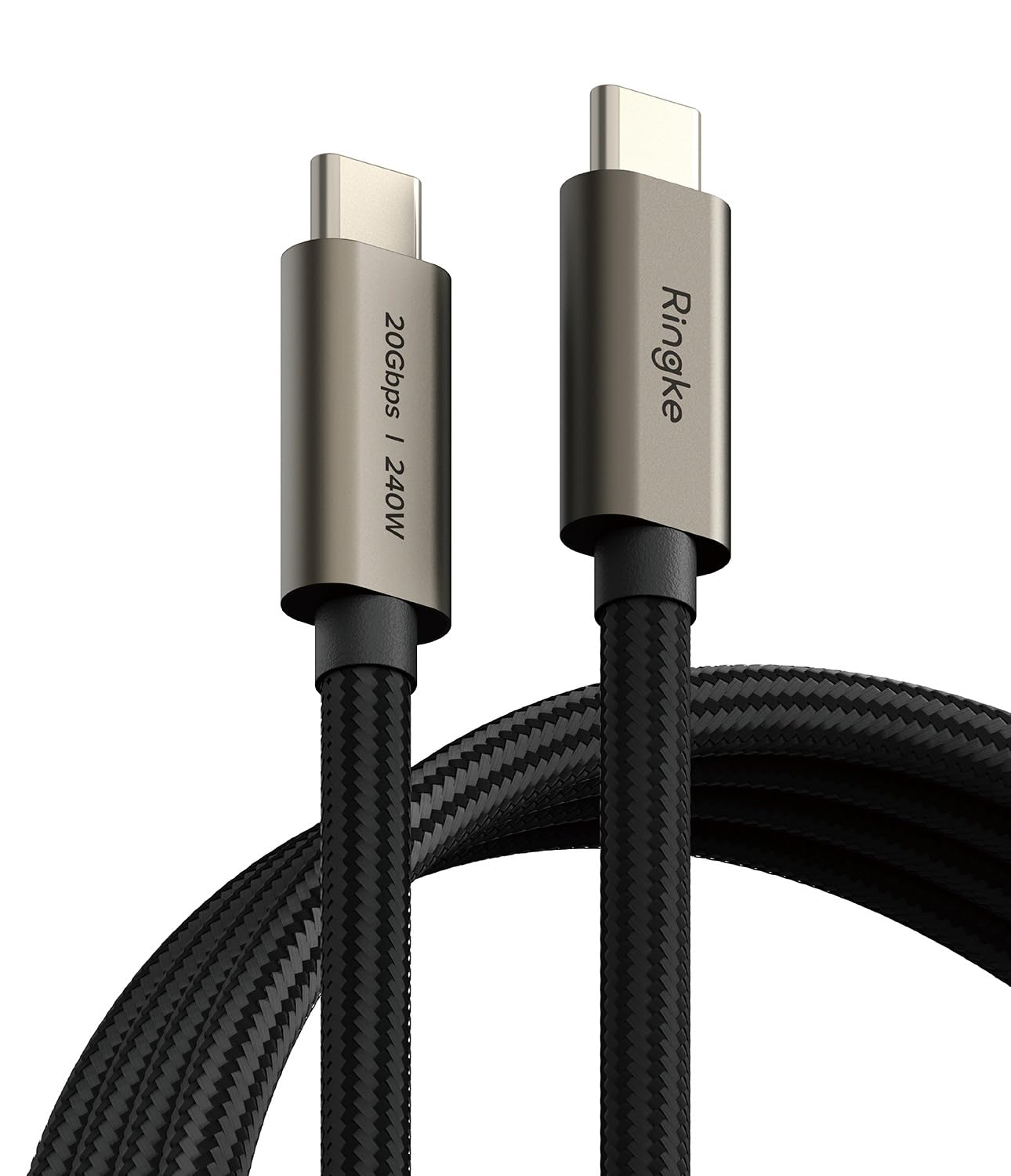 Ringke USB 3.2 Gen 2×2 USB-C Compatible with Type-C [1M / 240W] Interfaces 20Gbps Data Transfer Speed Fast Charging Cable – 1m For Smartphone (Black)