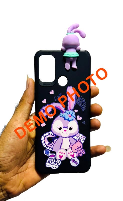 RM MOBILE ACCESSORIES 3D Cute Bunny Phone Case for Realme Narzo N61, Black Silicone Cover with Purple Rabbit Design