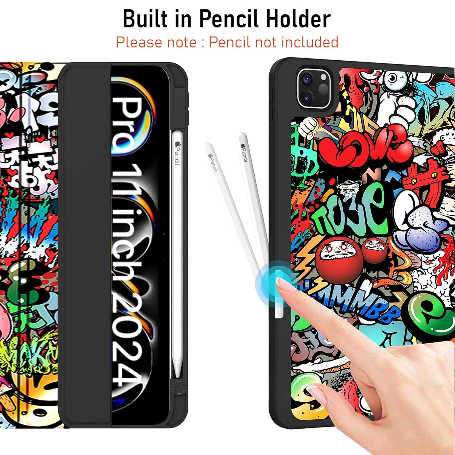 Robustrion Cover for iPad Pro 11 inch Cover Case 5th Generation (M4 2024) with Pencil Holder, Case Cover for iPad Pro 11 inch 2024 [Auto Sleep Wake Support] – Hippy