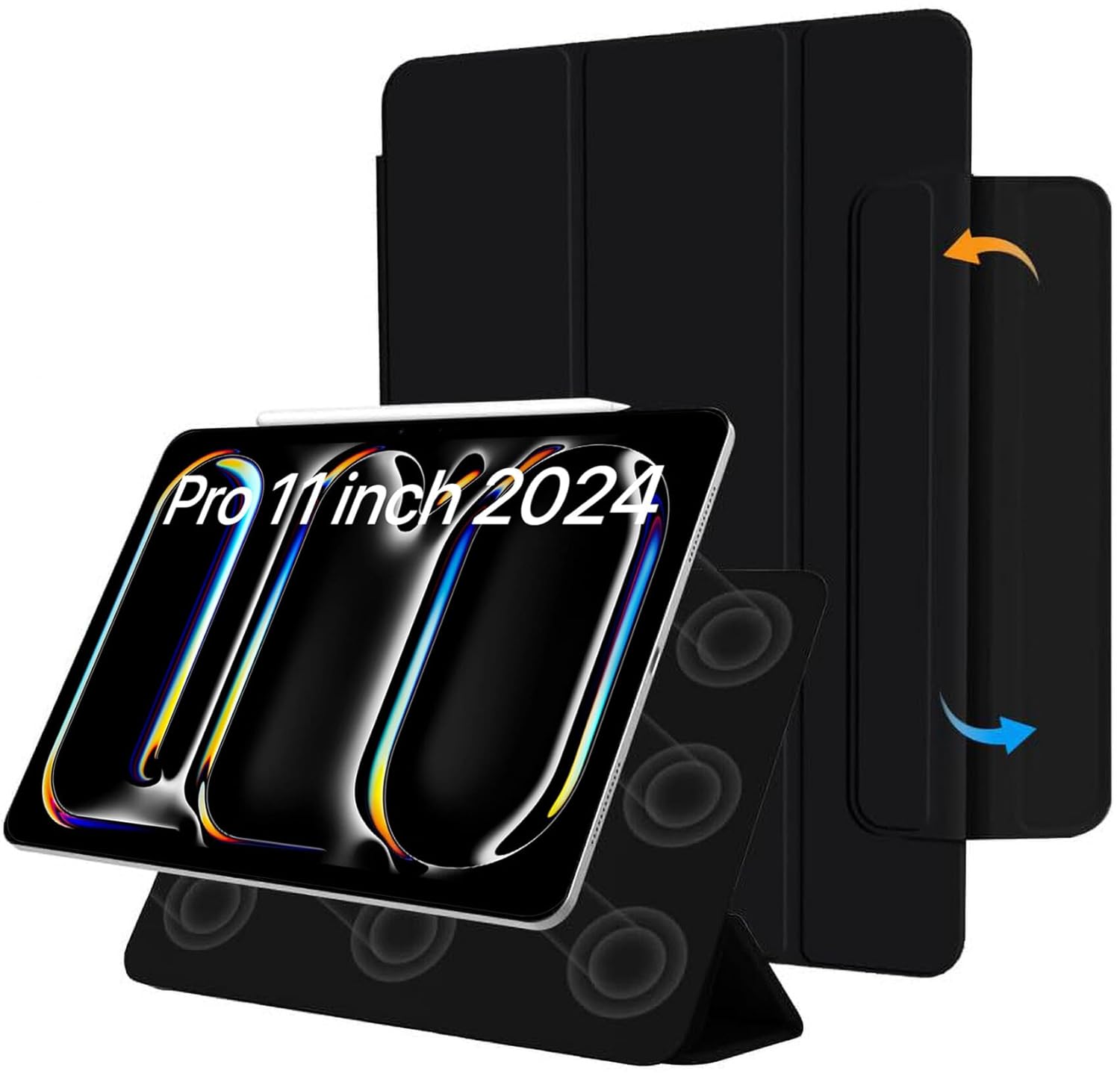 Robustrion Cover for iPad Pro 11 inch M4 [Magentic Attach] Case for iPad Pro 11 inch 2024 M4 [Auto Sleep Wake Support] – Black