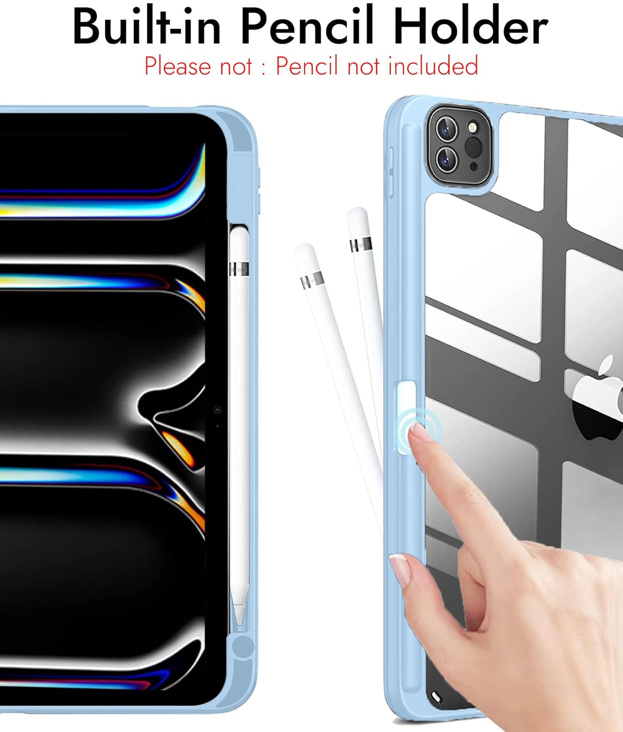 Robustrion for iPad Pro 11 inch M4 Cover Case 5th Generation (M4 2024) with [Pencil Holder] [Transparent Back] Hybrid Case Cover for iPad Pro 11 inch [Auto Sleep Wake Support] – Ocean Blue