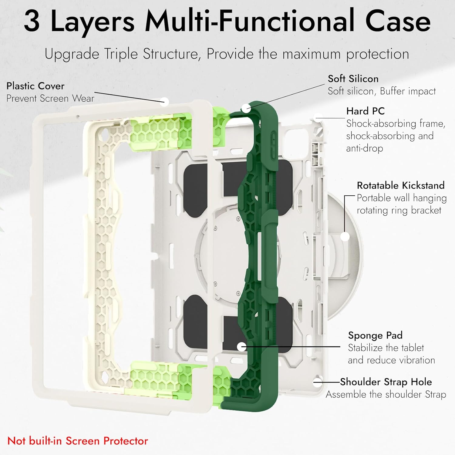 [Material]: This case is made of 3-Layers. Rugged Shockproof Exterior Provides Protection Against Dents and Dings, Soft TPU interior Provides a Scratch-Free Soft enclosure for your device.