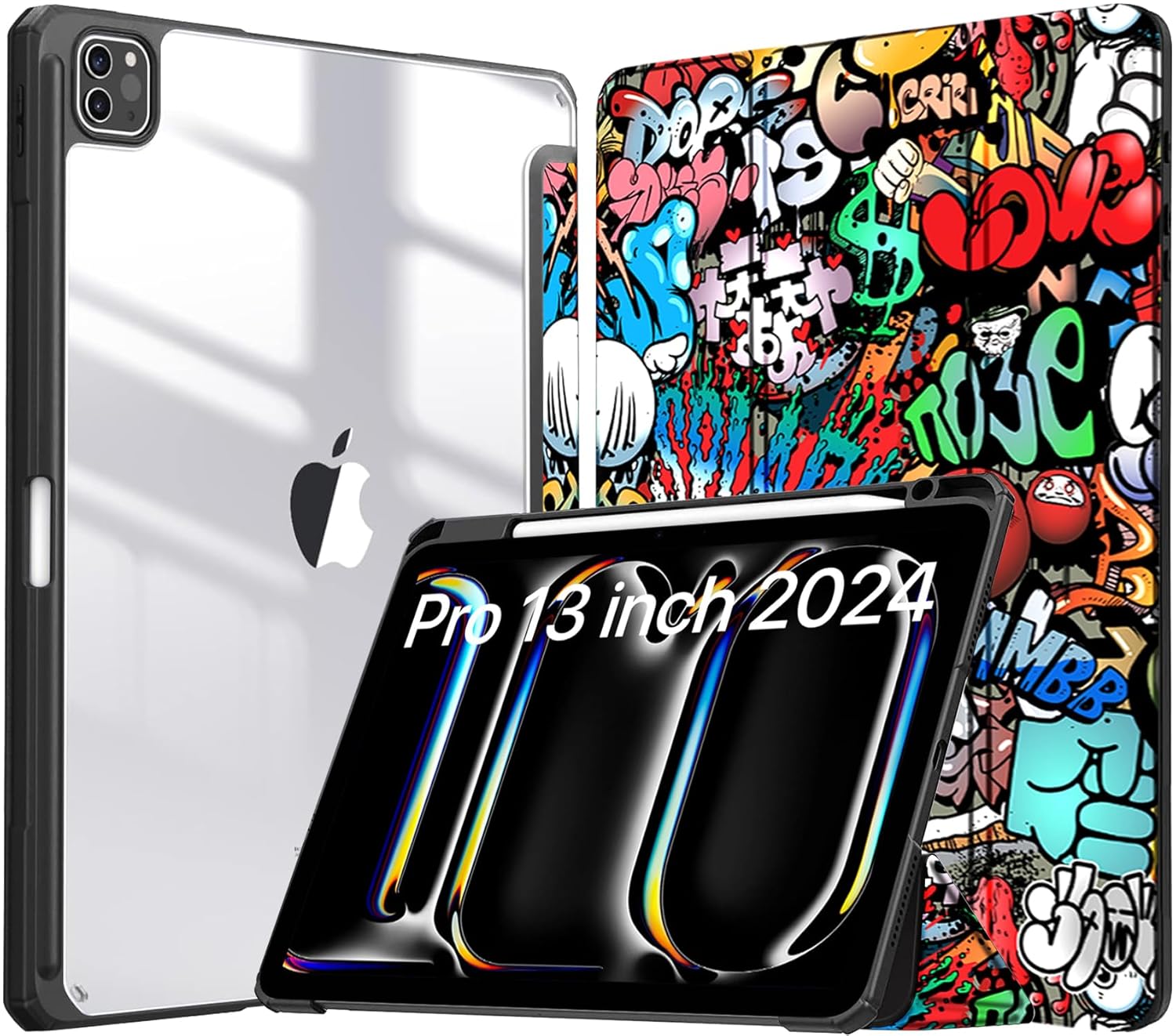 Robustrion for iPad Pro 13 inch M4 Cover Case (M4) 2024 with [Pencil Holder] [Transparent Back] Hybrid Case Cover for iPad Pro 13 inch [Auto Sleep Wake Support] – Hippy