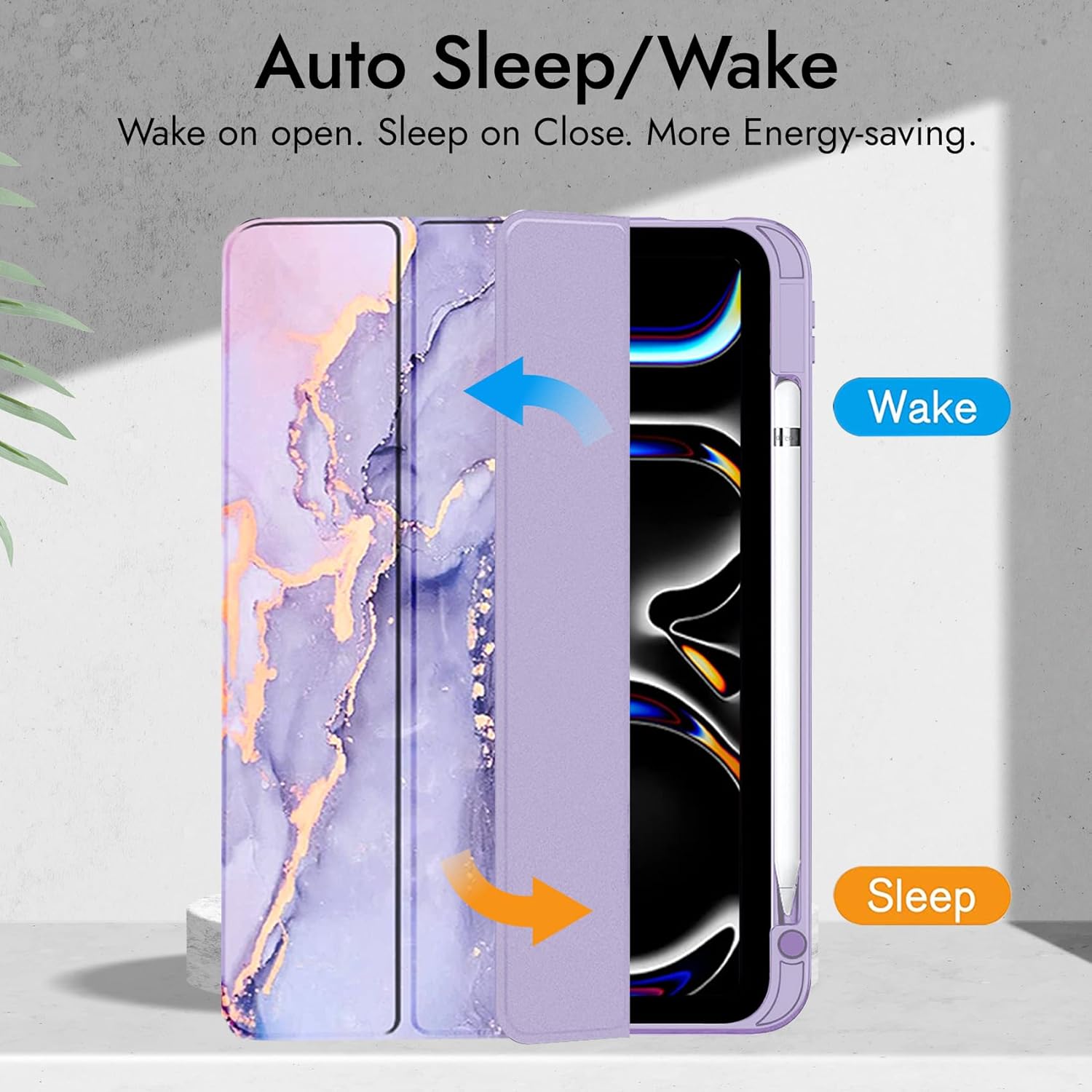 Robustrion for iPad Pro 13 inch M4 Cover Case (M4) 2024 with [Pencil Holder] [Transparent Back] Hybrid Case Cover for iPad Pro 13 inch [Auto Sleep Wake Support] – Marble Lilac