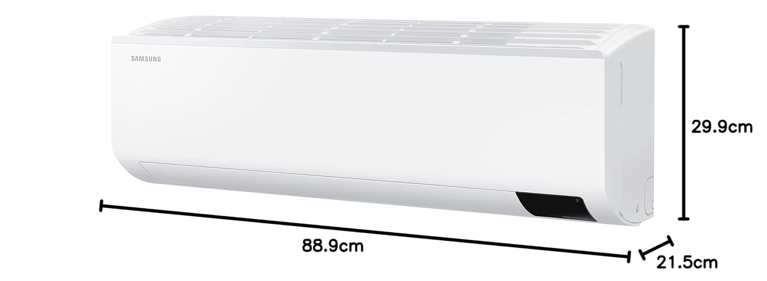 Included in the box: Indoor Unit, Outdoor Unit, Remote Control, 2 batteries, User manual and Warranty Card (1 Year on product, 10 Years on AC compressor) || Indoor Unit Dimensions (mm) WxHxD): 889 X 299 X 215 mmOutdoor Unit Dimensions (mm) WxHxD): 790 X 548 X 285 mm |