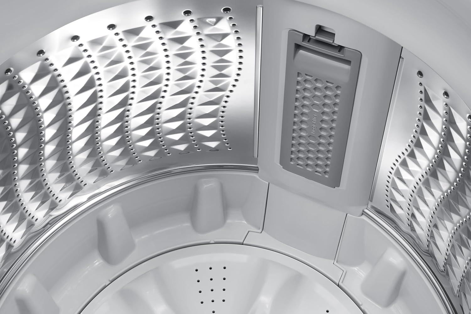 Keep unsightly speckles off your whites and darks, and protect the drainage from getting clogged up. A Magic Filter with a dual mesh, at the front and back, effectively gathers the lint, fluff and particles that come out of your laundry.