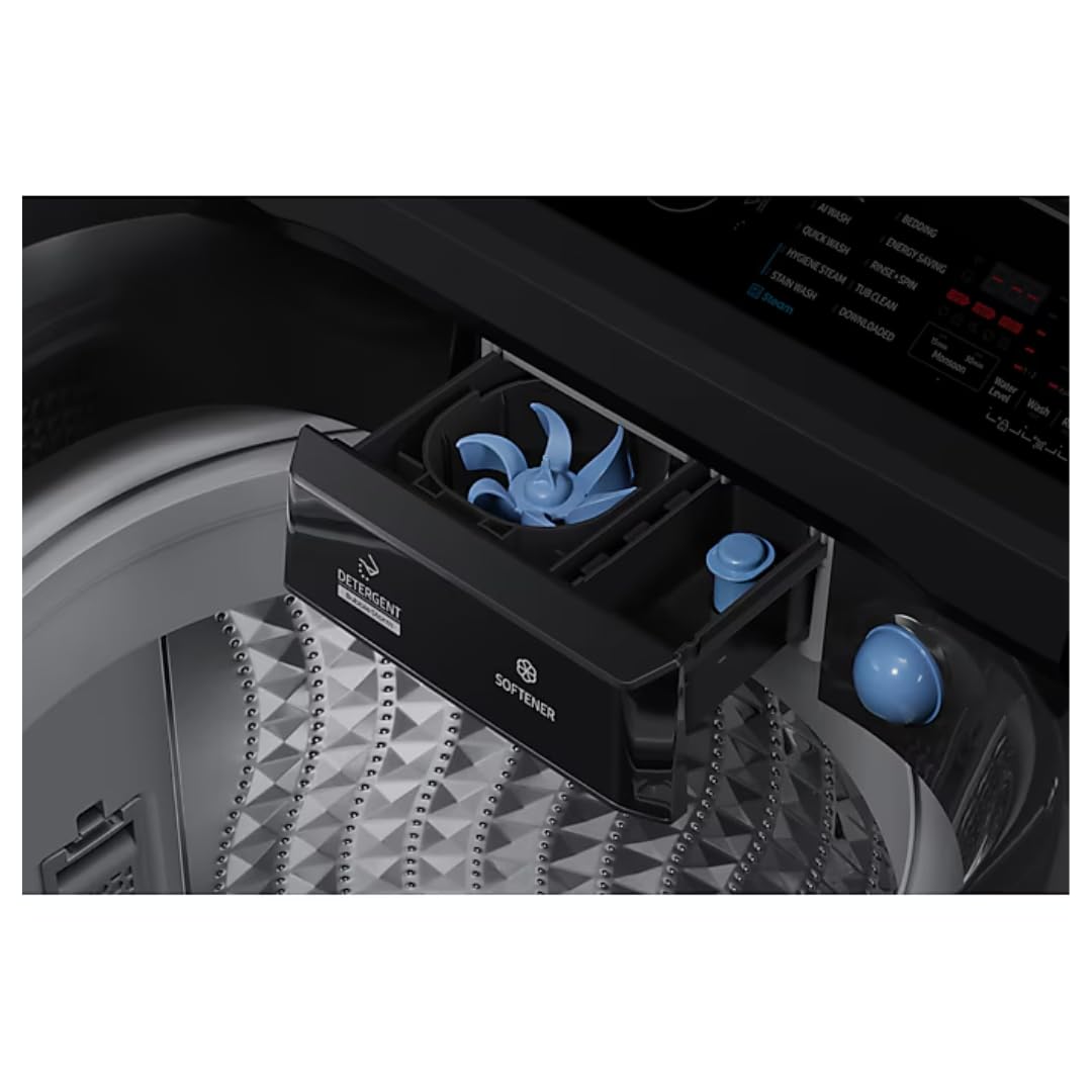 Samsung 12 kg 5 Star AI Wash Top Load Washing Machine with Heater, Eco Bubble, BubbleStorm, Dual Storm Pulsator, Soft Close Lid, Black Caviar (WA80F12B6B, 2025 Model)