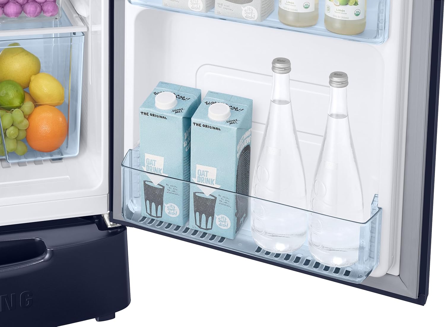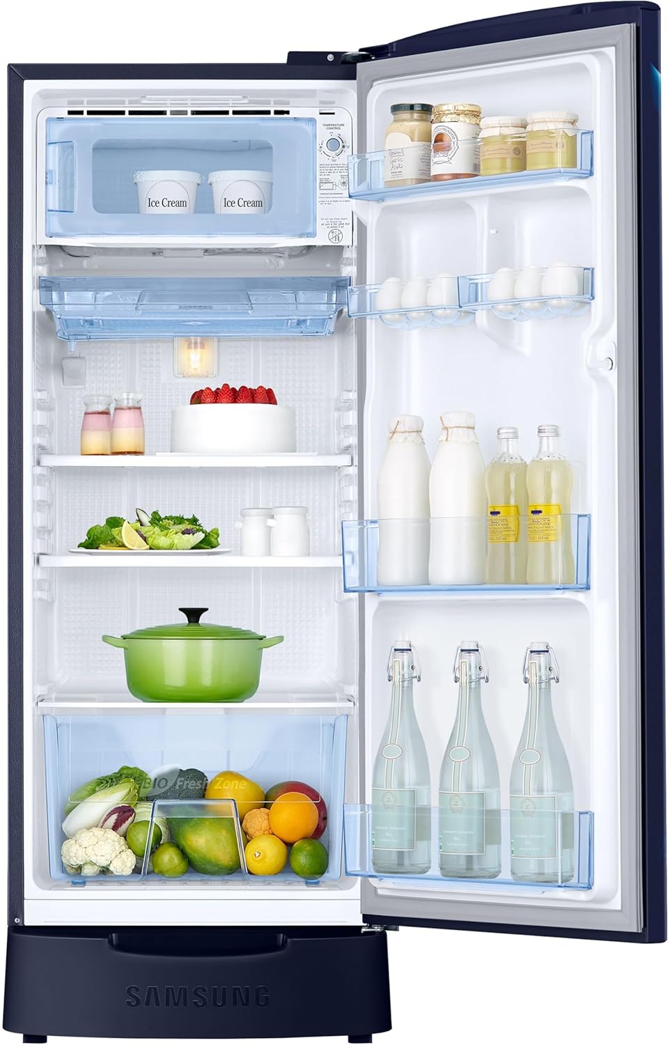 Samsung 215L 5 Star Inverter Direct-Cool Single Door Refrigerator (RR23C2H35UZ/HL,Midnight Blossom Blue) Base Stand Drawer