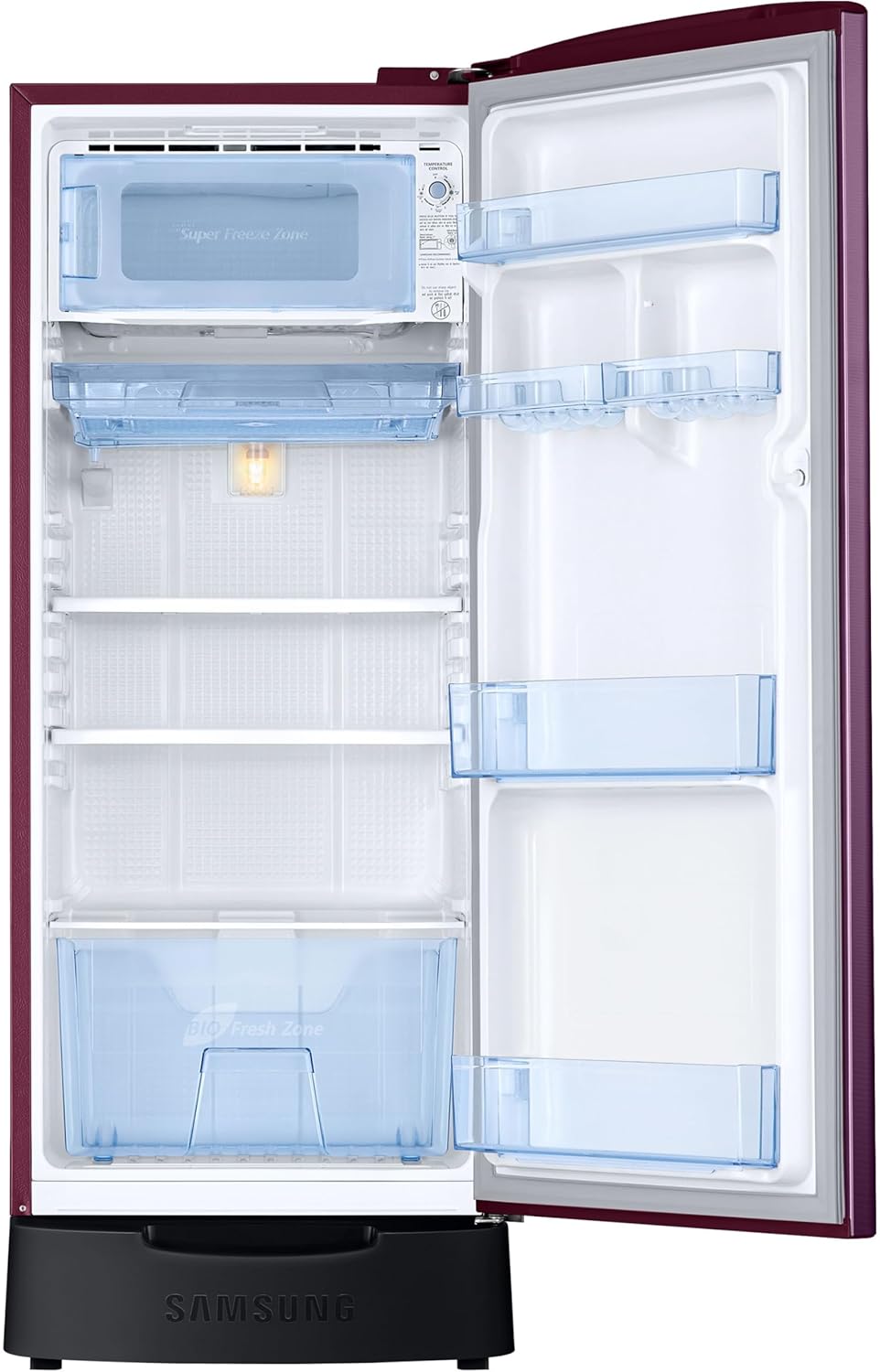 Samsung 183 L, 5 Star, Digital Inverter, Direct-Cool Single Door Refrigerator (RR20D2825CR/NL, Red, Camellia Purple, Base Stand Drawer)