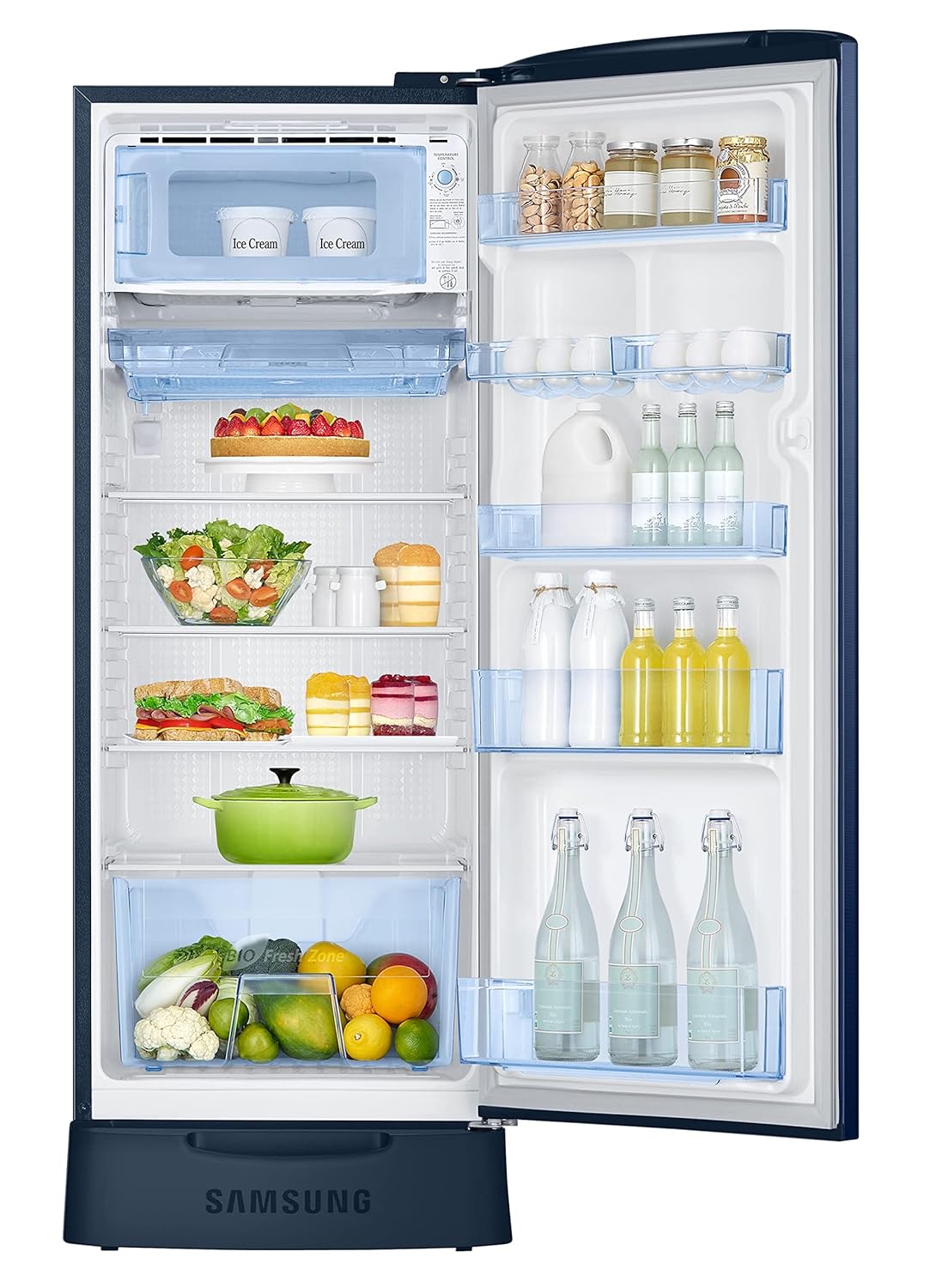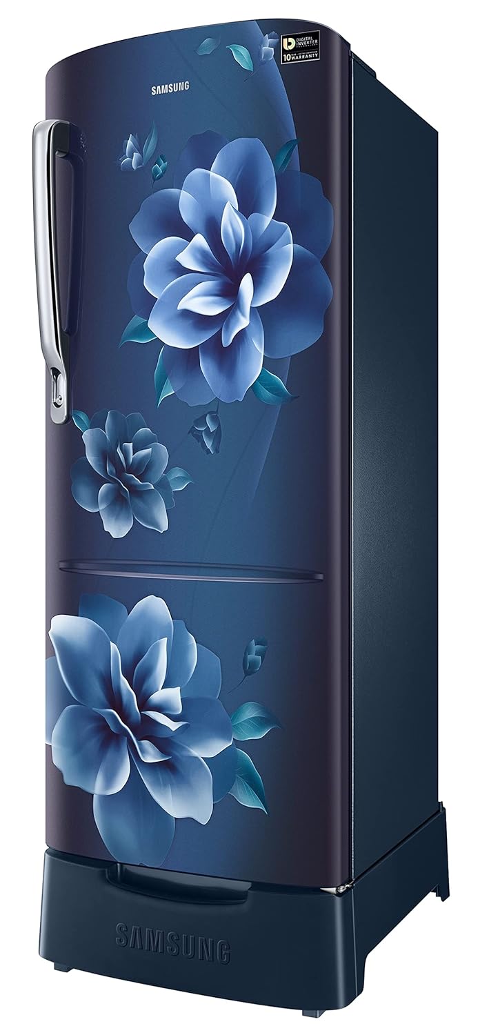 Samsung 223L 3 Star Inverter Direct-Cool Single Door Refrigerator Appliance (RR24C2823CU/NL,Camellia Blue) Base Stand Drawer