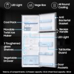 Additional Features : Stabilizer Free Operation (100v – 300v) | Multi Flow | Up to 15 Days of Fresh Food | Recess Handle | Door Alarm | Easy Clean Back | Veg Box | Big Bottle Guard (Deep Door Guard) | LED Light