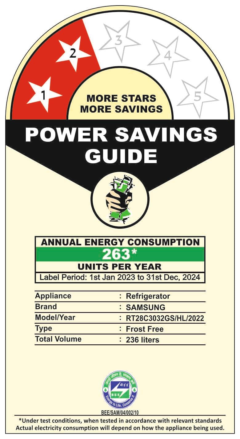 Energy Rating : 2 Star Energy Efficiency | Annual Energy Consumption : 263 Kilowatt Hours Per Year