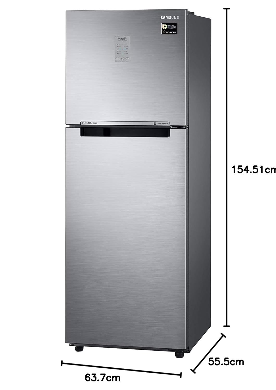 Samsung 236L 2 Star Inverter Frost-Free Convertible 3 In 1 Double Door Refrigerator Appliance (RT28C3732S8/HL,Elegant Inox)