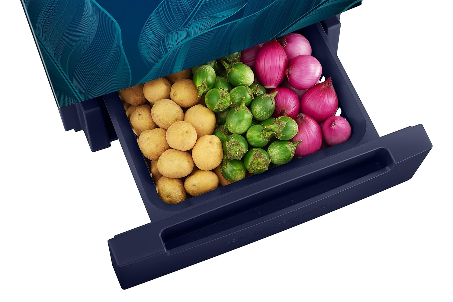 Samsung 236L 2 Star Inverter Frost-Free Double Door Refrigerator Appliance (RT28C31429U/HL,Paradise Bloom Blue), Base Stand Drawer
