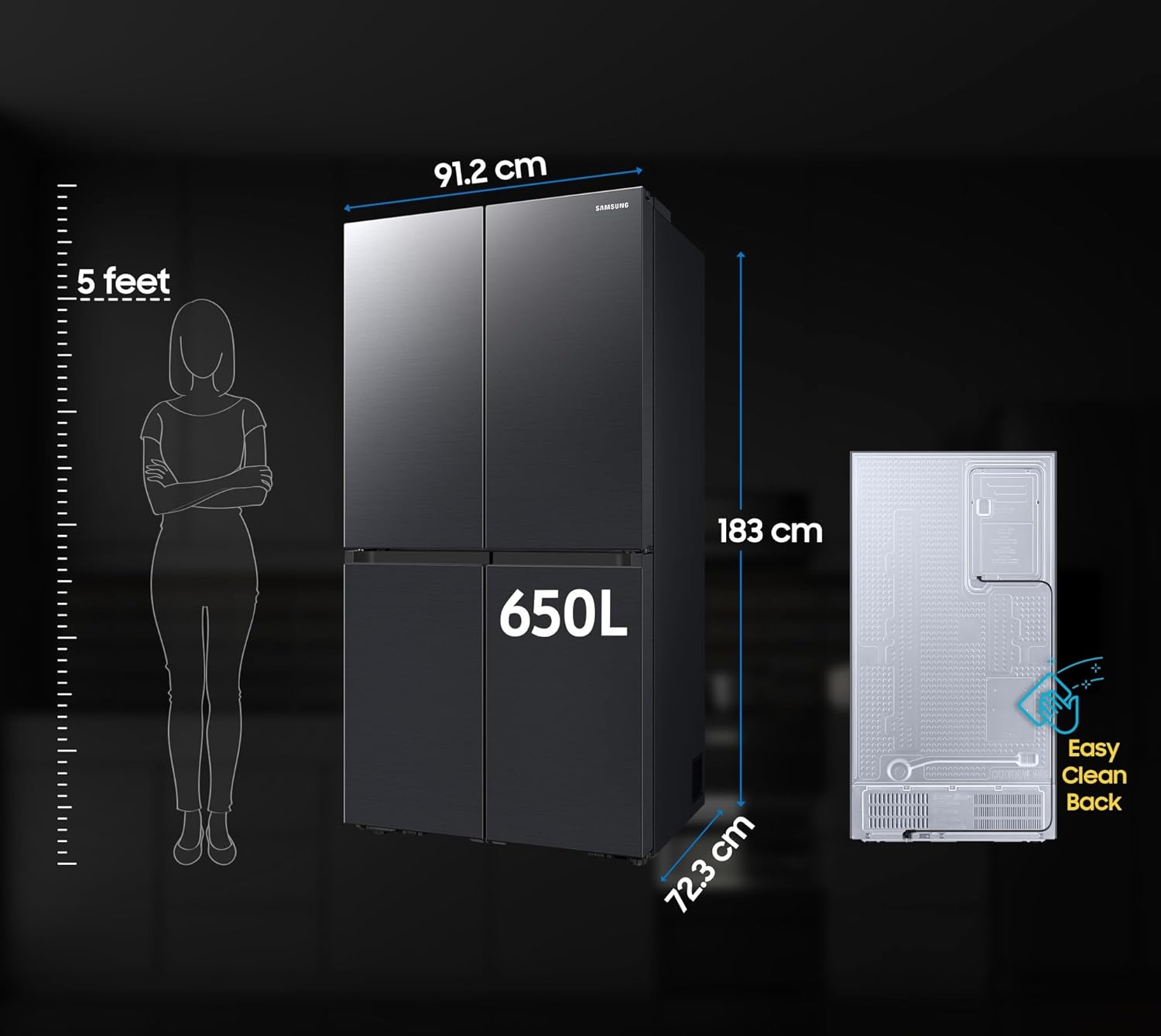 Samsung 650 L (Smartchoice), Convertible, Digital Inverter, Frost Free, French Door Refrigerator (RF65DG90BDSGTL, Black, Black Caviar)