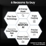 AI Energy Mode with SmartThings Connectivity – Control and monitor your refrigerator remotely via the SmartThings app. The AI-powered energy optimization feature helps reduce power consumption, making it energy-efficient and cost-effective.